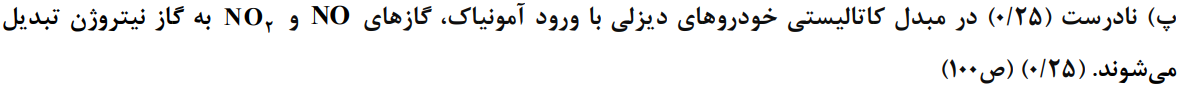 پ)کدام واکنش داده شده در مبدل کاتالیستی خودروهای دیزلی انجام نمی شود؟