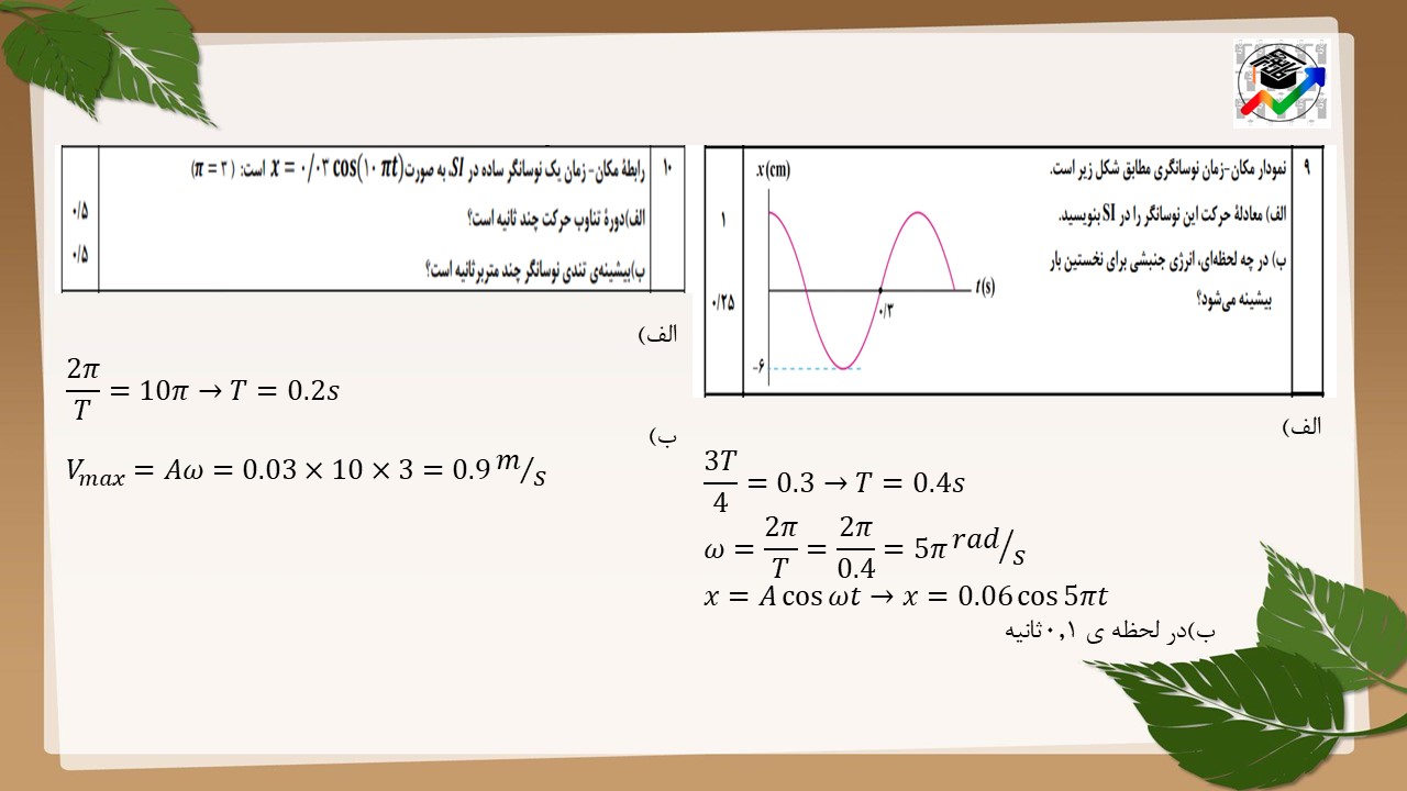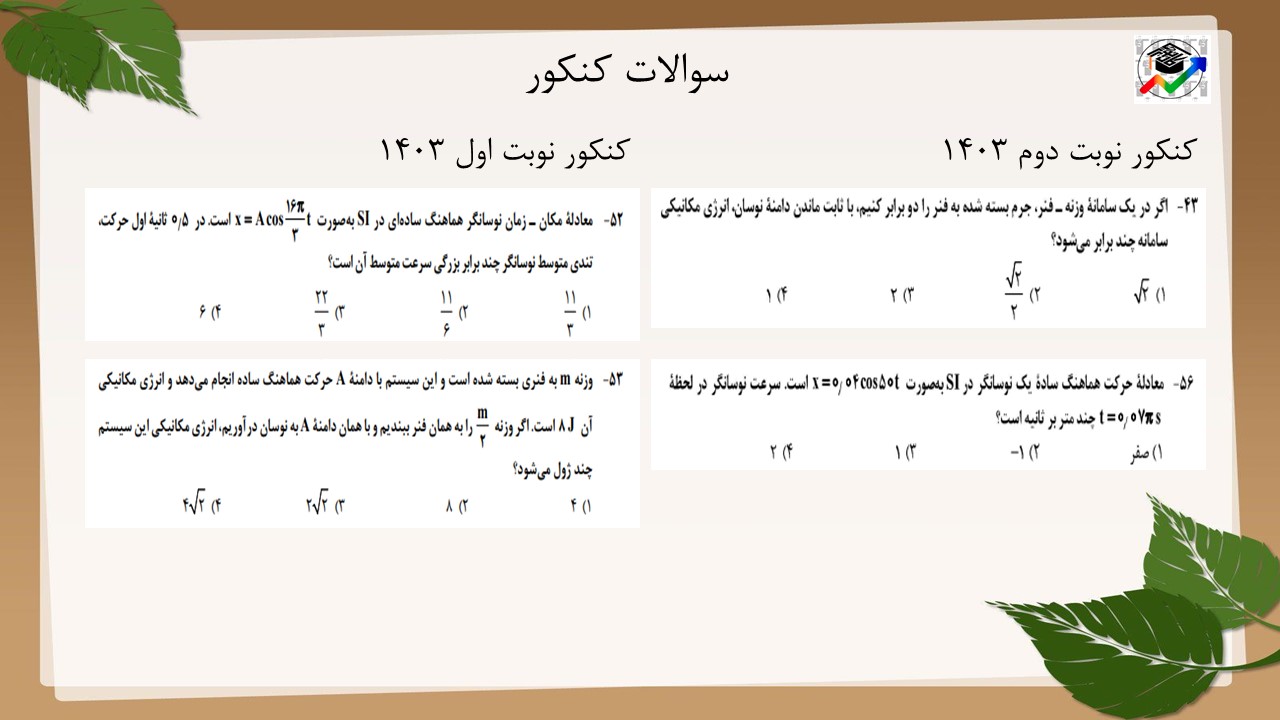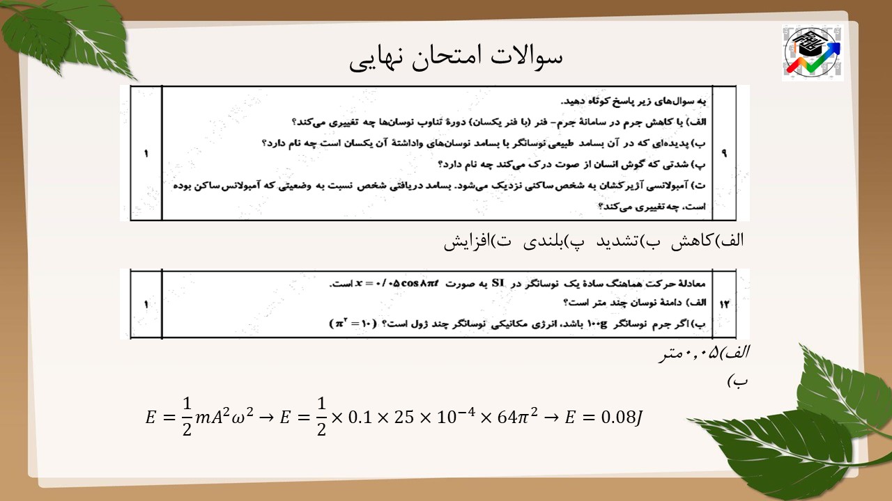 در ابتدا سوالاتی که از این بخش از فصل نوسان وموج در امتحان نهایی آمده است را میبینیم.