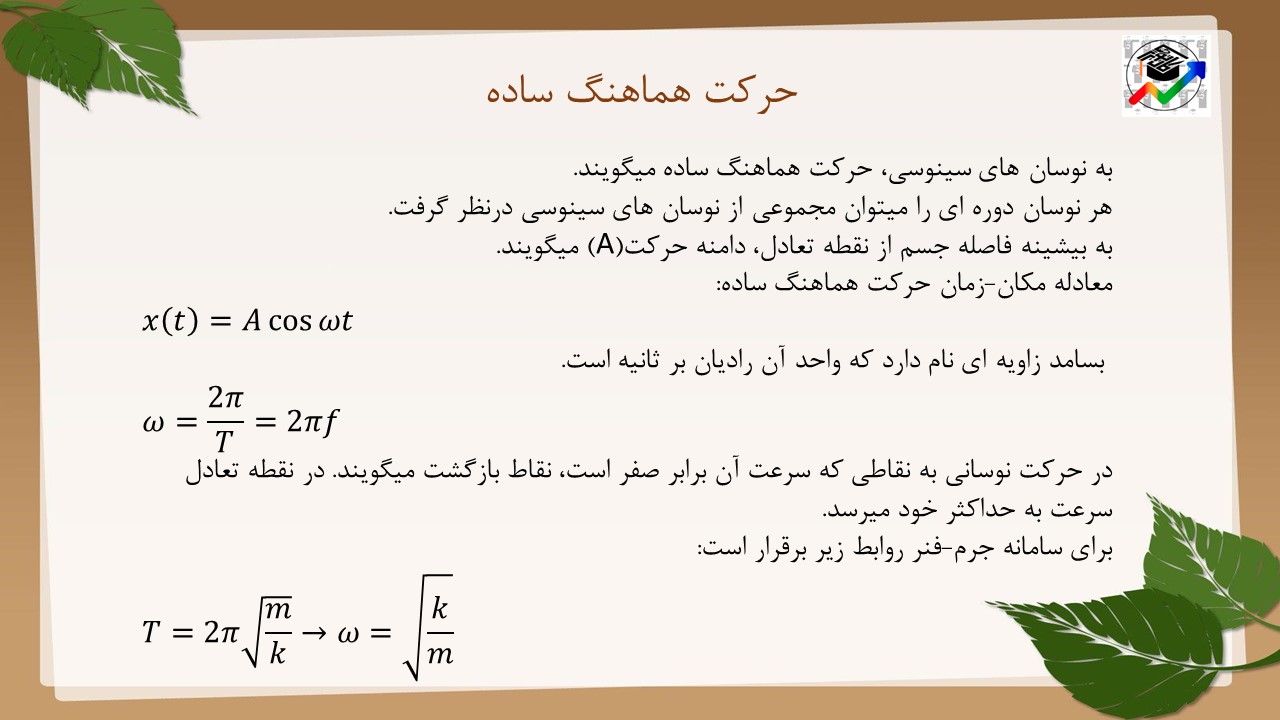 🔴تعداد نوسان های انجام شده در هر ثانیه بسامد/فرکانس(f) نامیده میشود. که یکای آن هرتز(Hz) است.