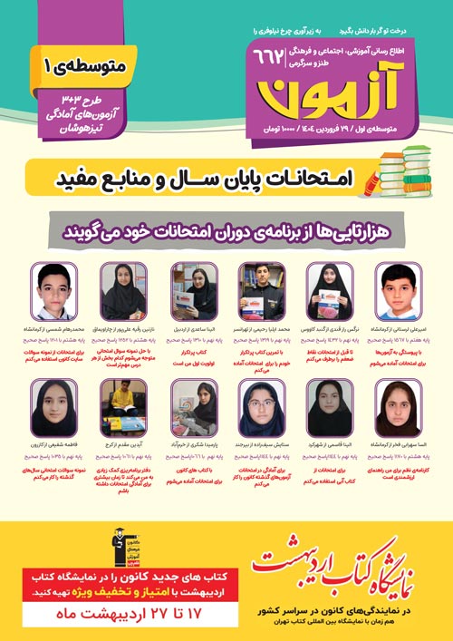 شما دانشآموزان میتوانید مجلات آزمون 29 فروردین را از طریق فایل ضمیمه این مطلب دانلود کرده و مطالعه کنید.