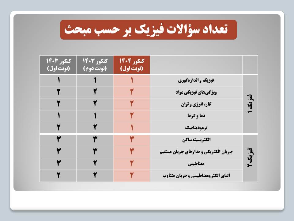 رویکردهای درس "فیزیک" در کنکور ریاضی اردیبهشت 1404