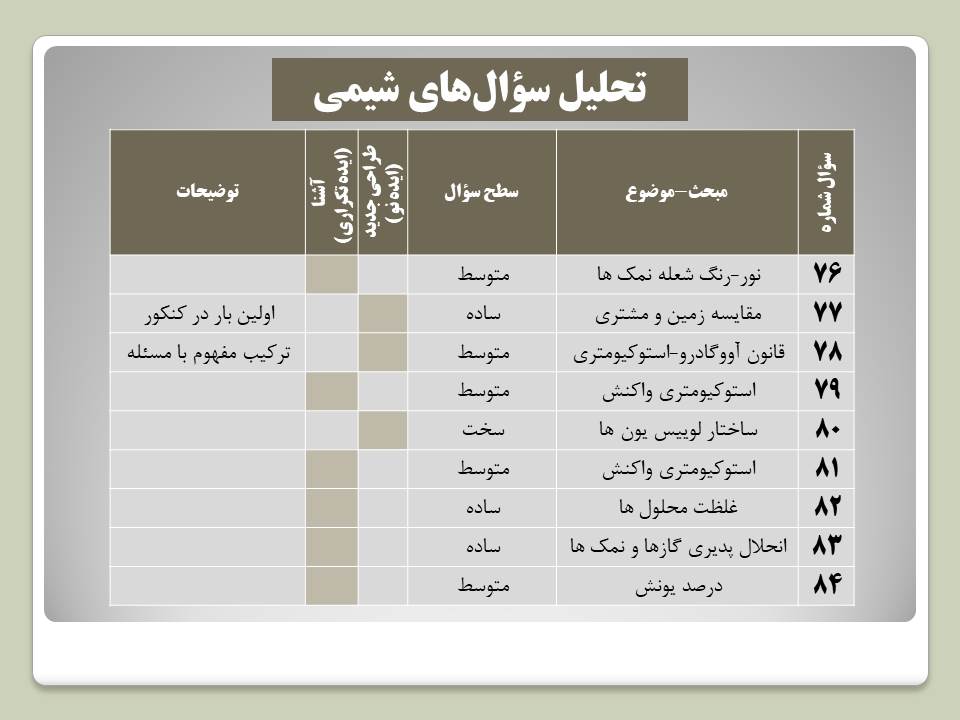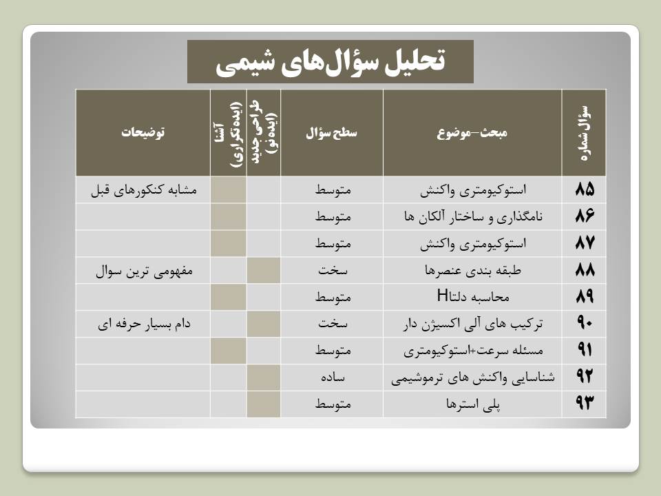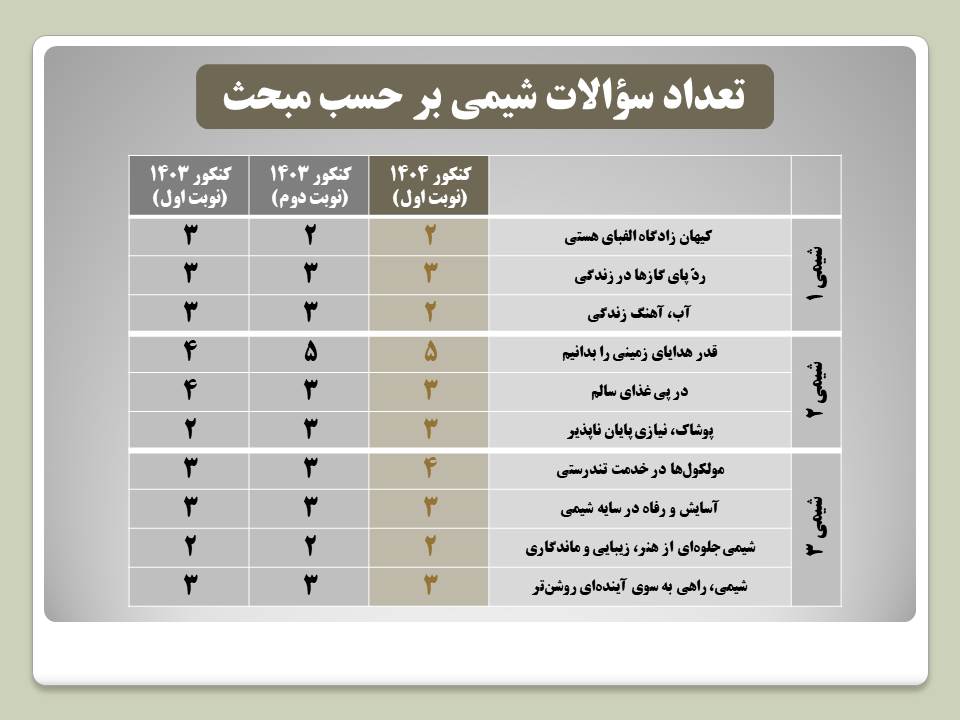 رویکردهای درس "شیمی" در کنکور ریاضی اردیبهشت 1404
