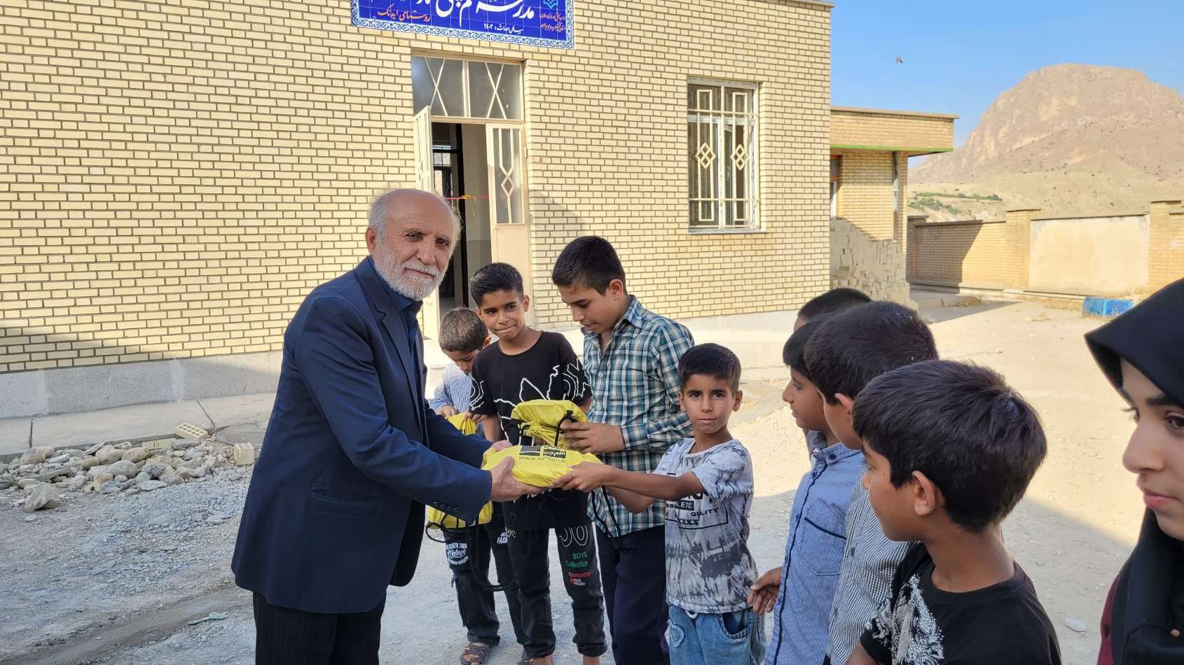 اهدای کیف و لوازم التحریر توسط محمدنبی یعقوبیان مسئول نمایندگی سوق