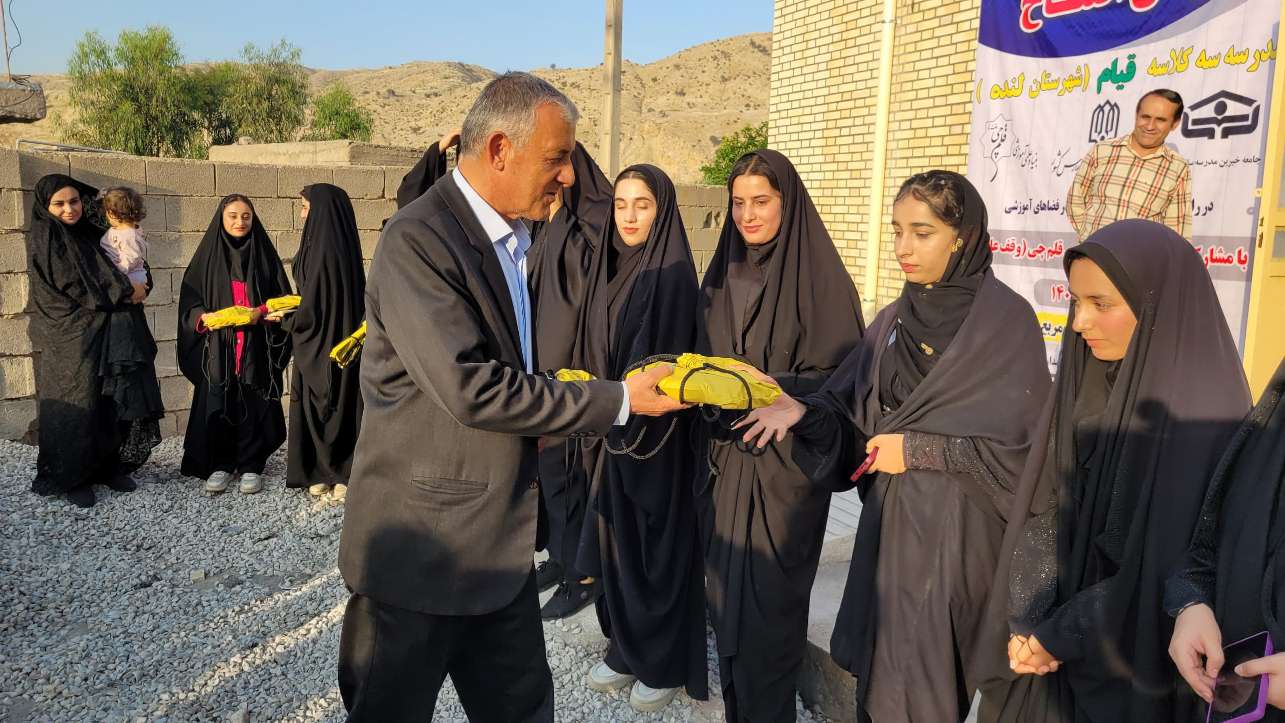 مراسم افتتاح مدرسه روستای قیام با حضور گروه اعزامی بنیاد قلمچی از تهران و مسئولان نمایندگیهای بنیاد قلمچی، محمد رحیم یزدانی از دهدشت، محمدنبی یعقوبیان از سوق، غلامرضا یزدانپرست از لنده، مدیر آموزش و پرورش لنده و تعدادی از مسئولان محلی برگزار و به دانشآموزان پکیج لوازمالتحریر از سوی بنیاد قلمچی اهدا شد.