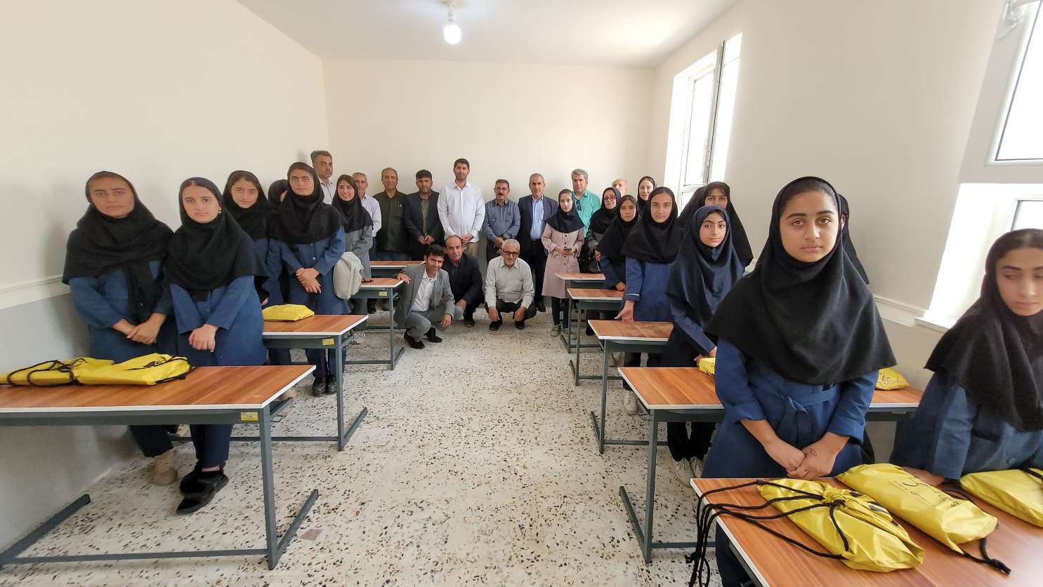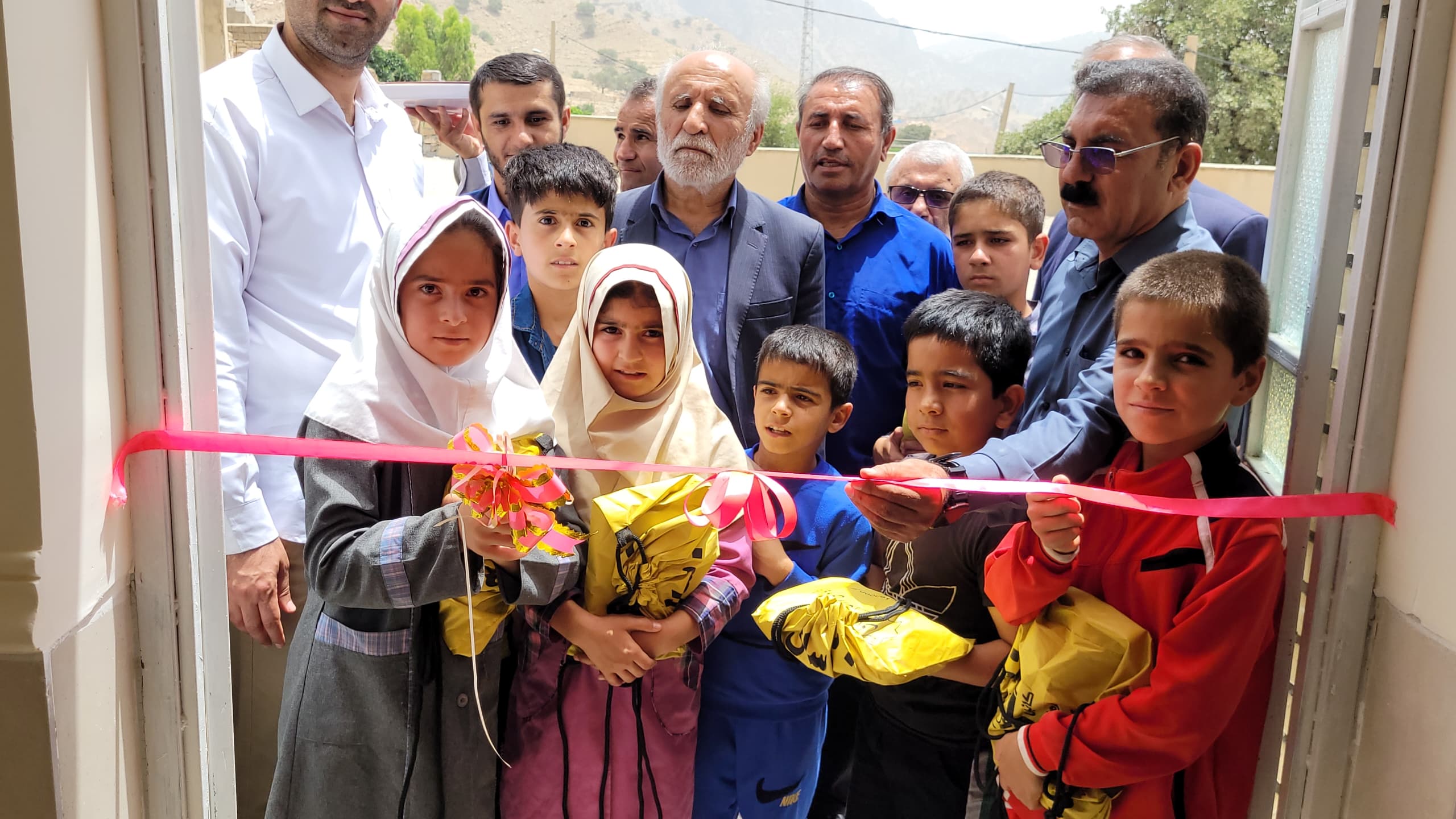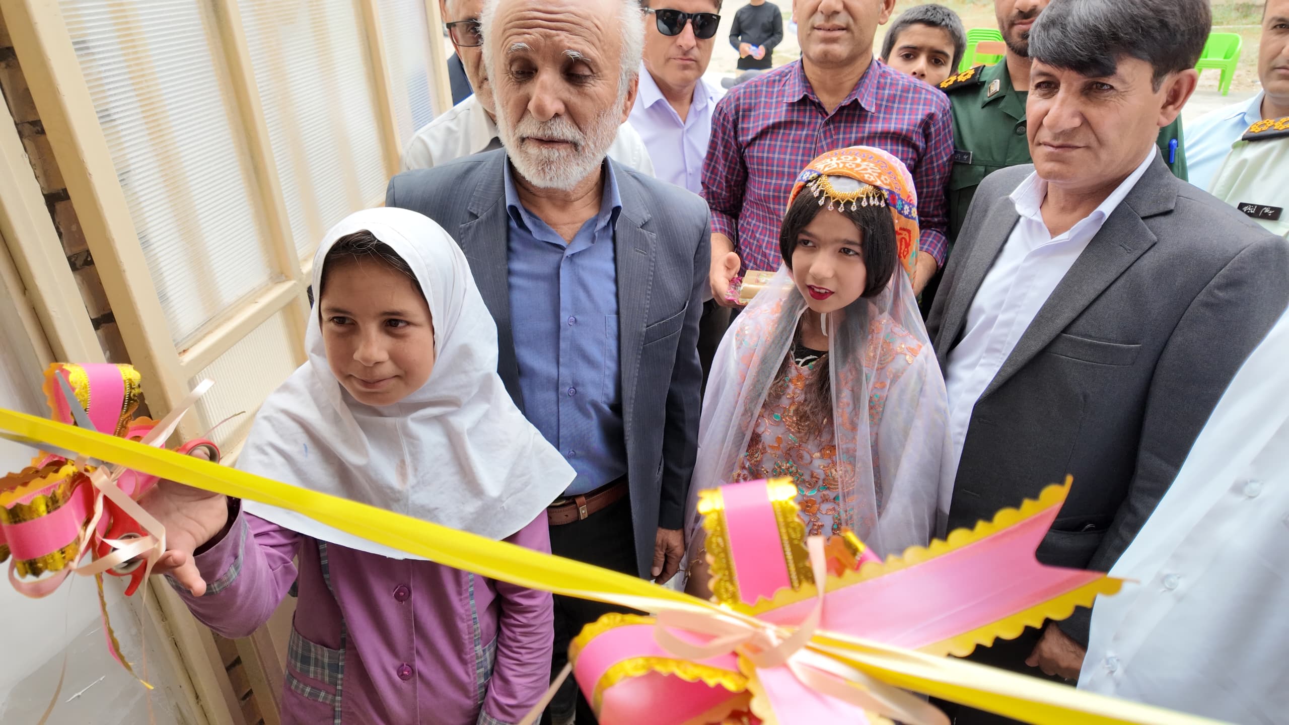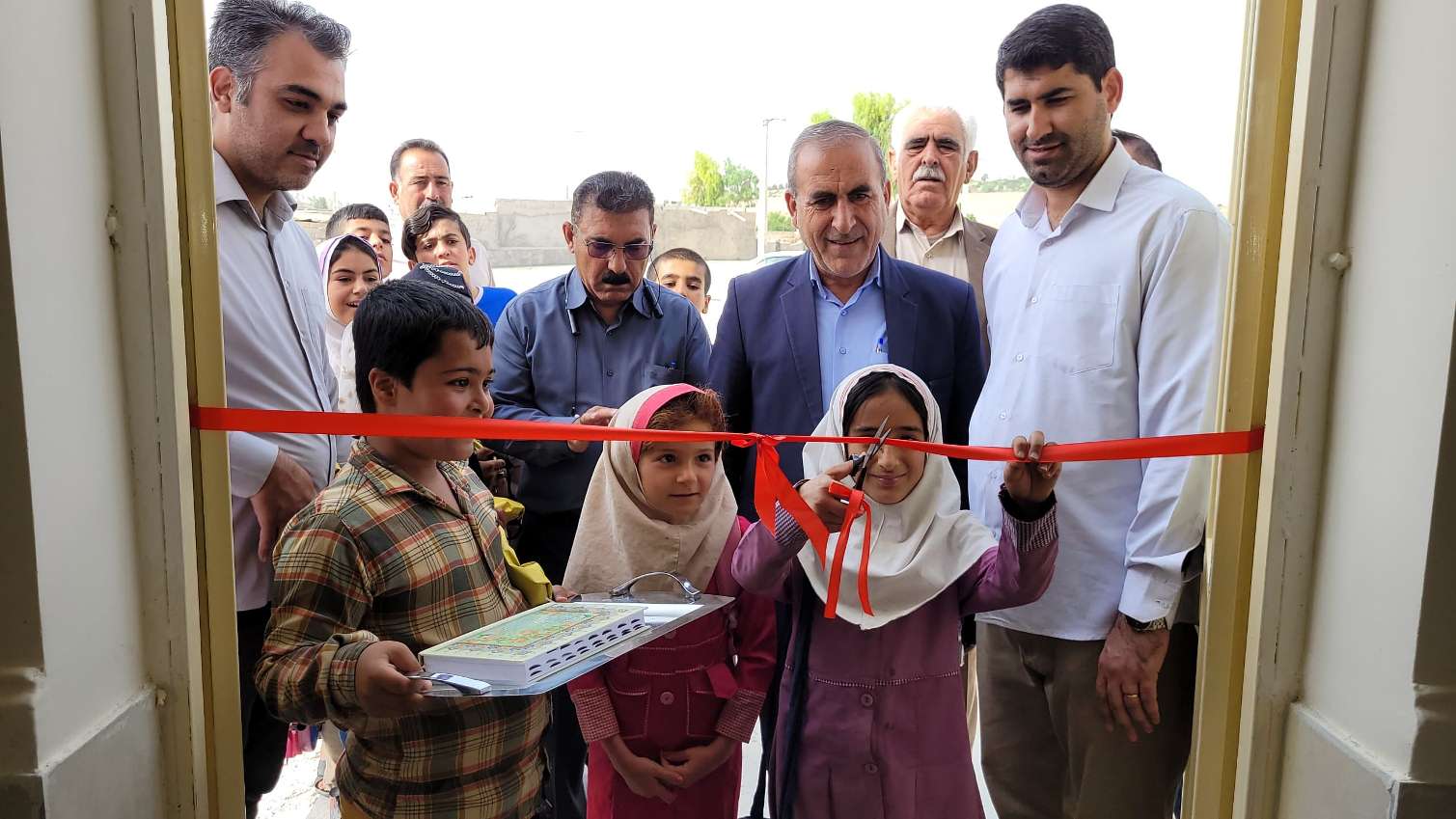 بریدن روبان افتتاح توسط دانشآموزان مدرسه