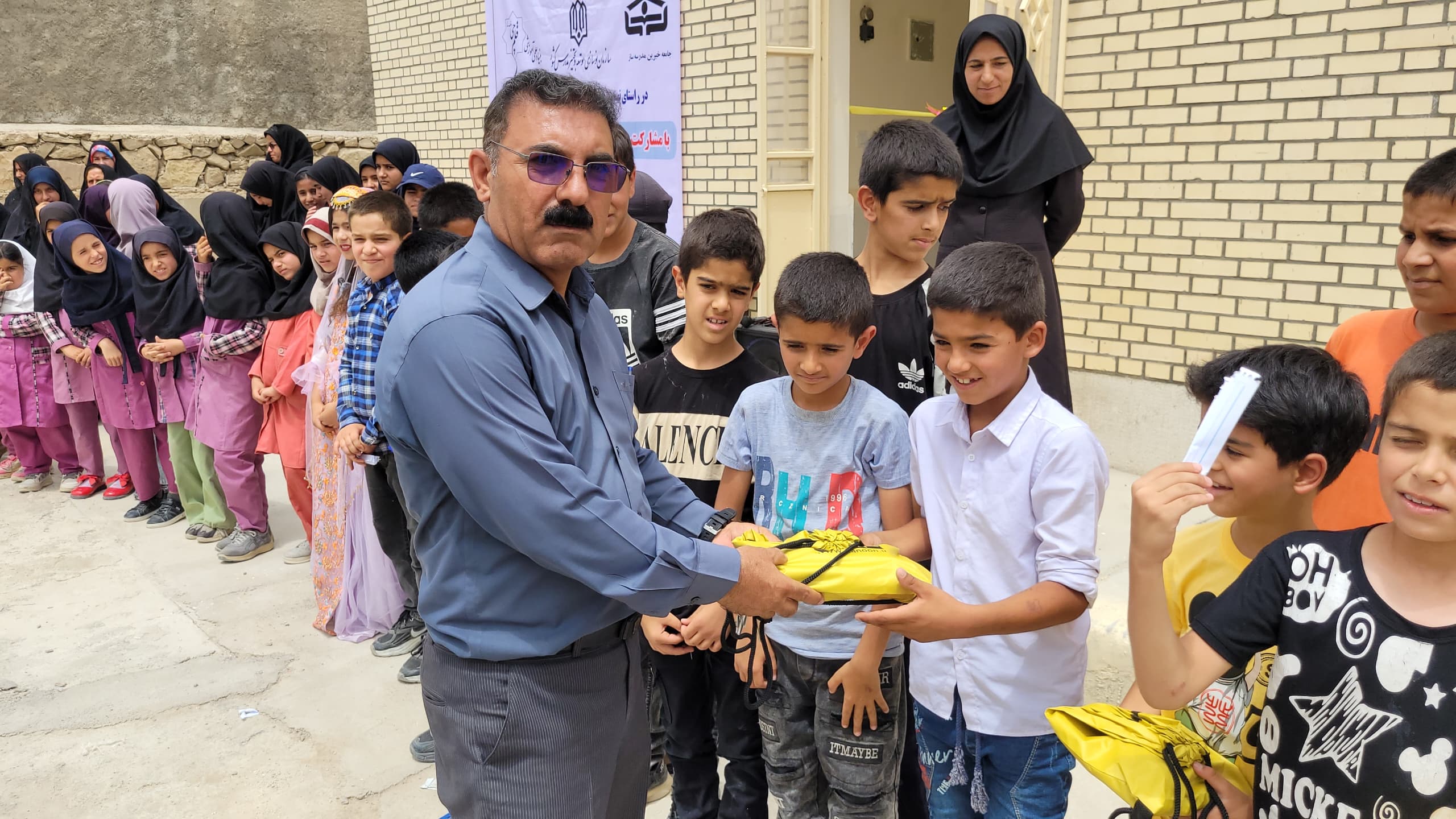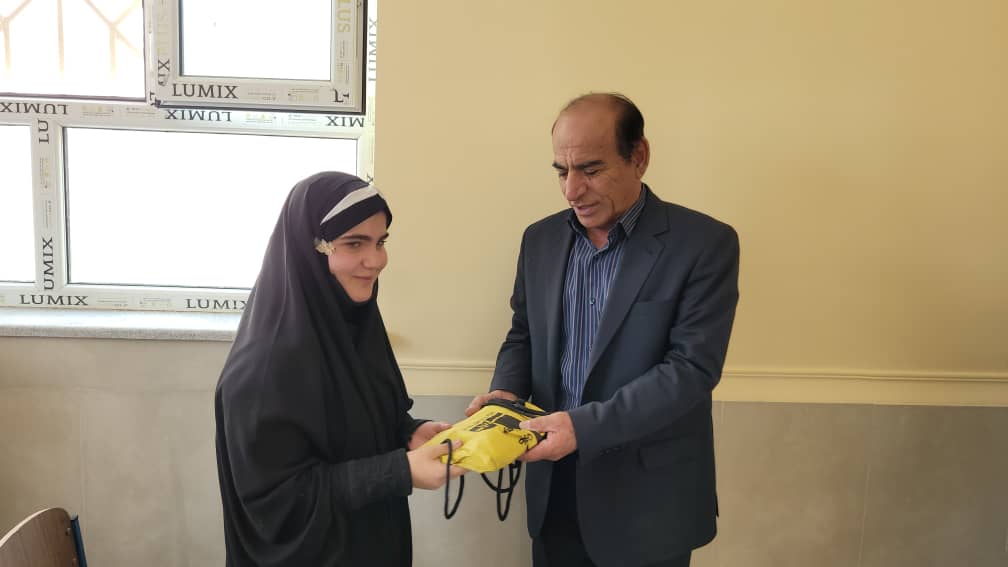 اهدای کیف و لوازم التحریر توسط محمدنبی یعقوبیان مسئول نمایندگی سوق