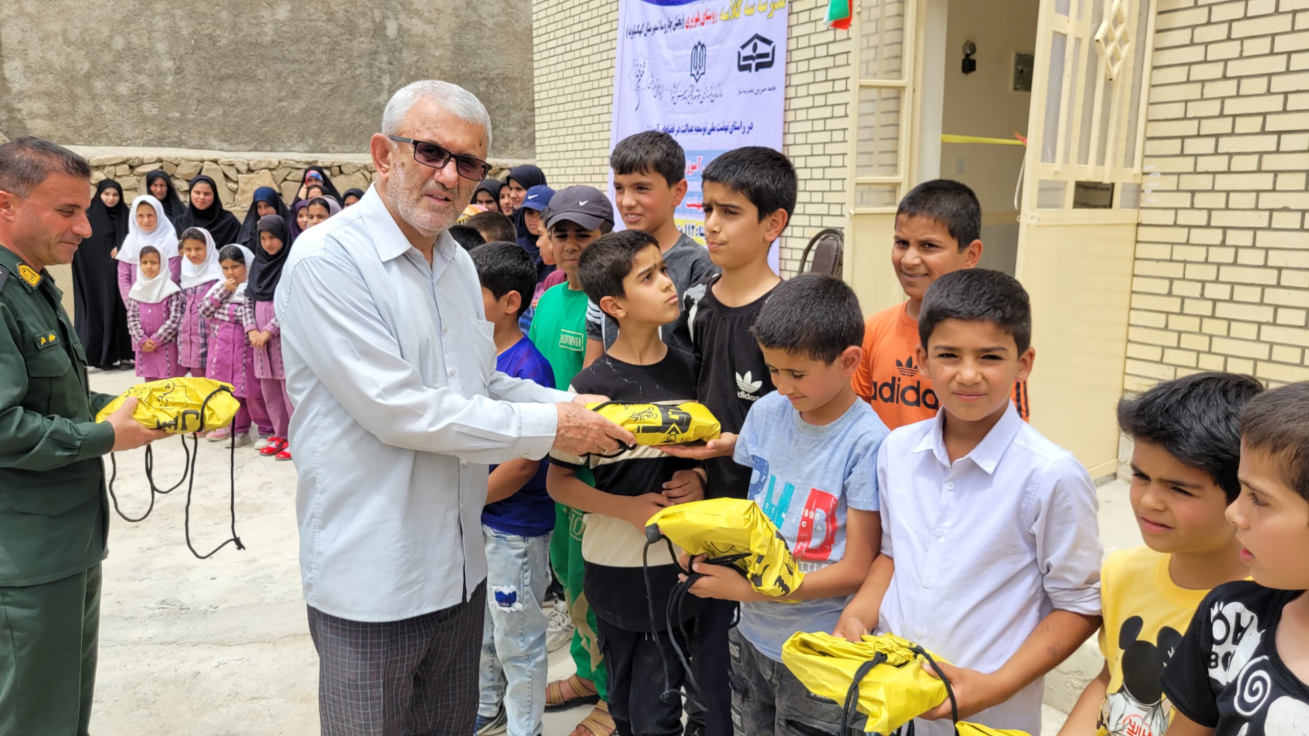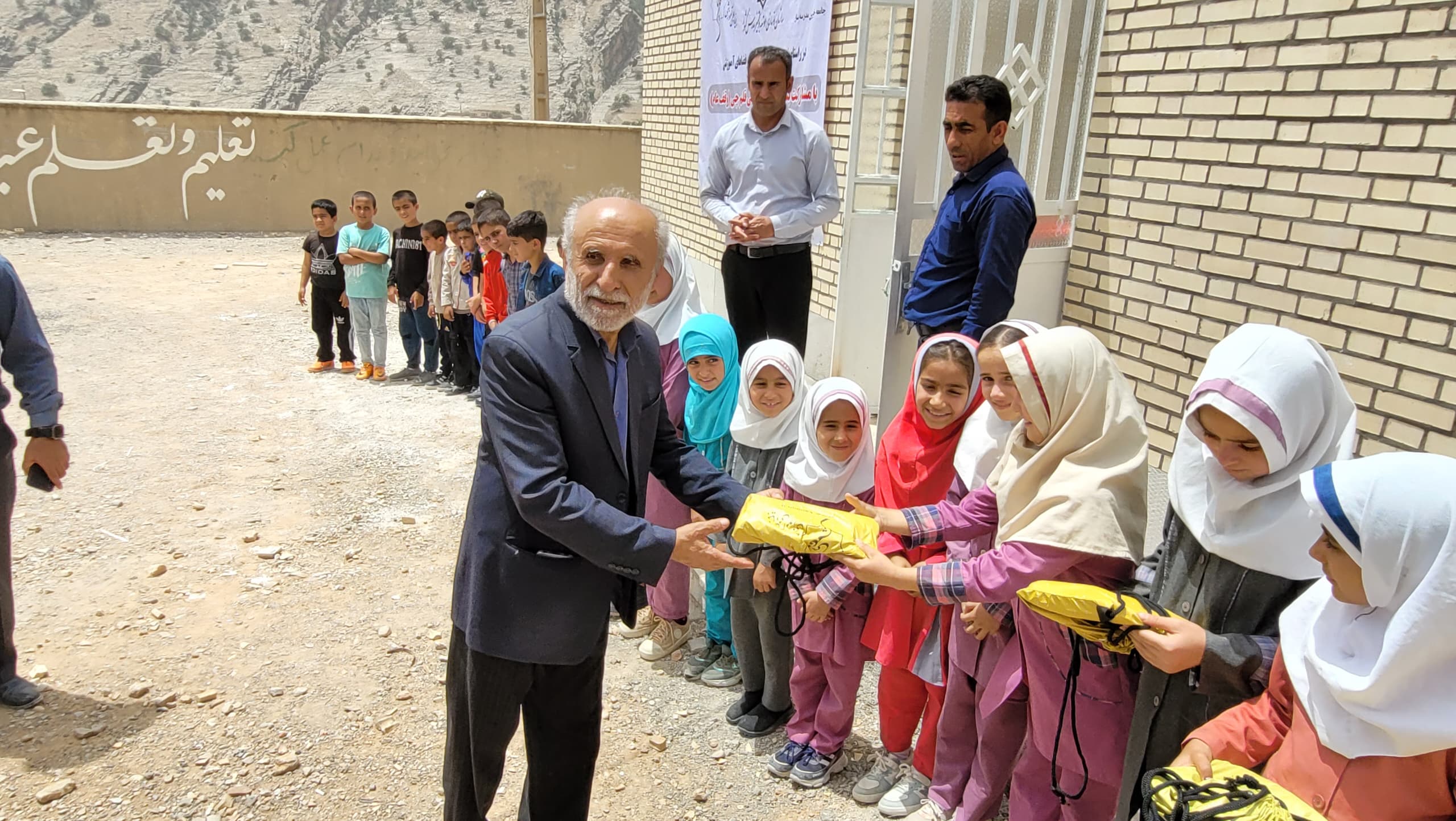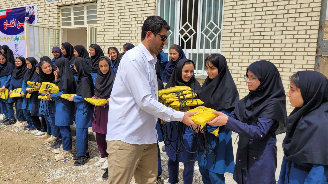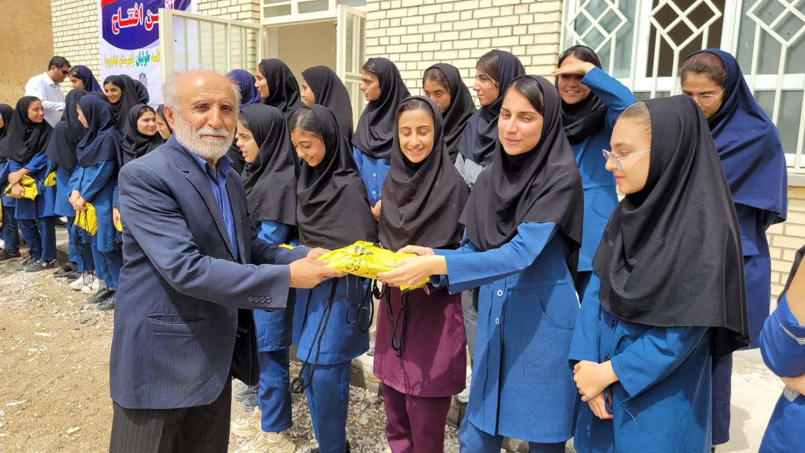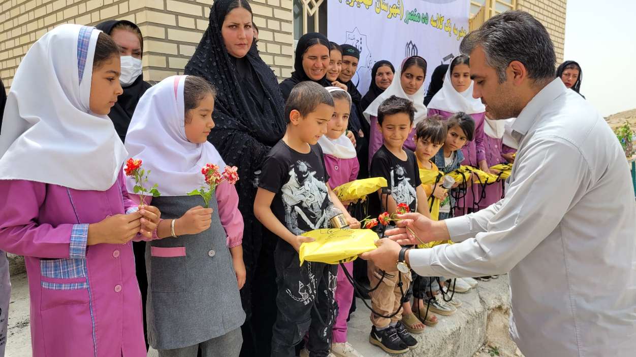 اهدای پکیج لوازمالتحریر توسط صابر فتاحی مسئول پروژههای مدرسهسازی