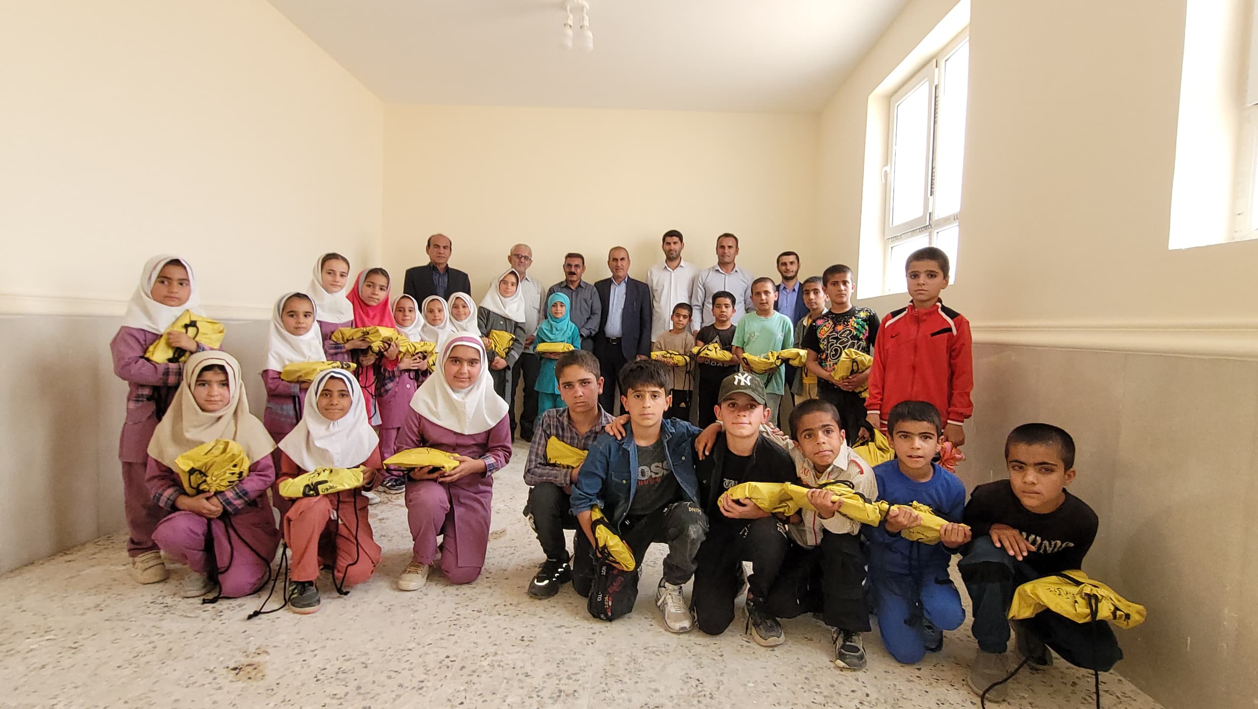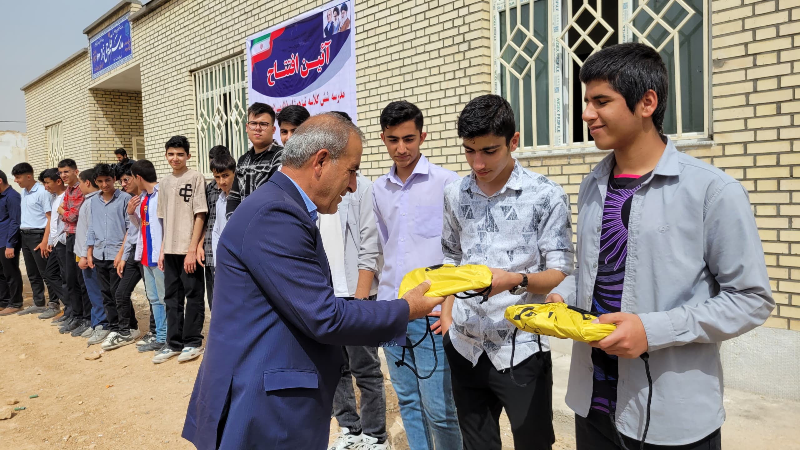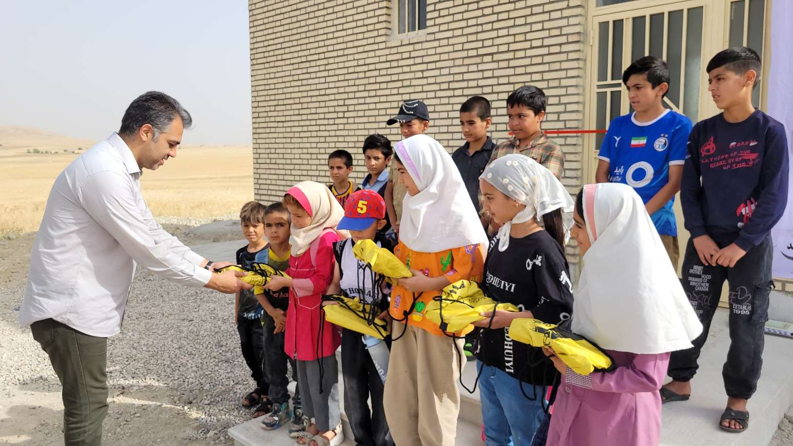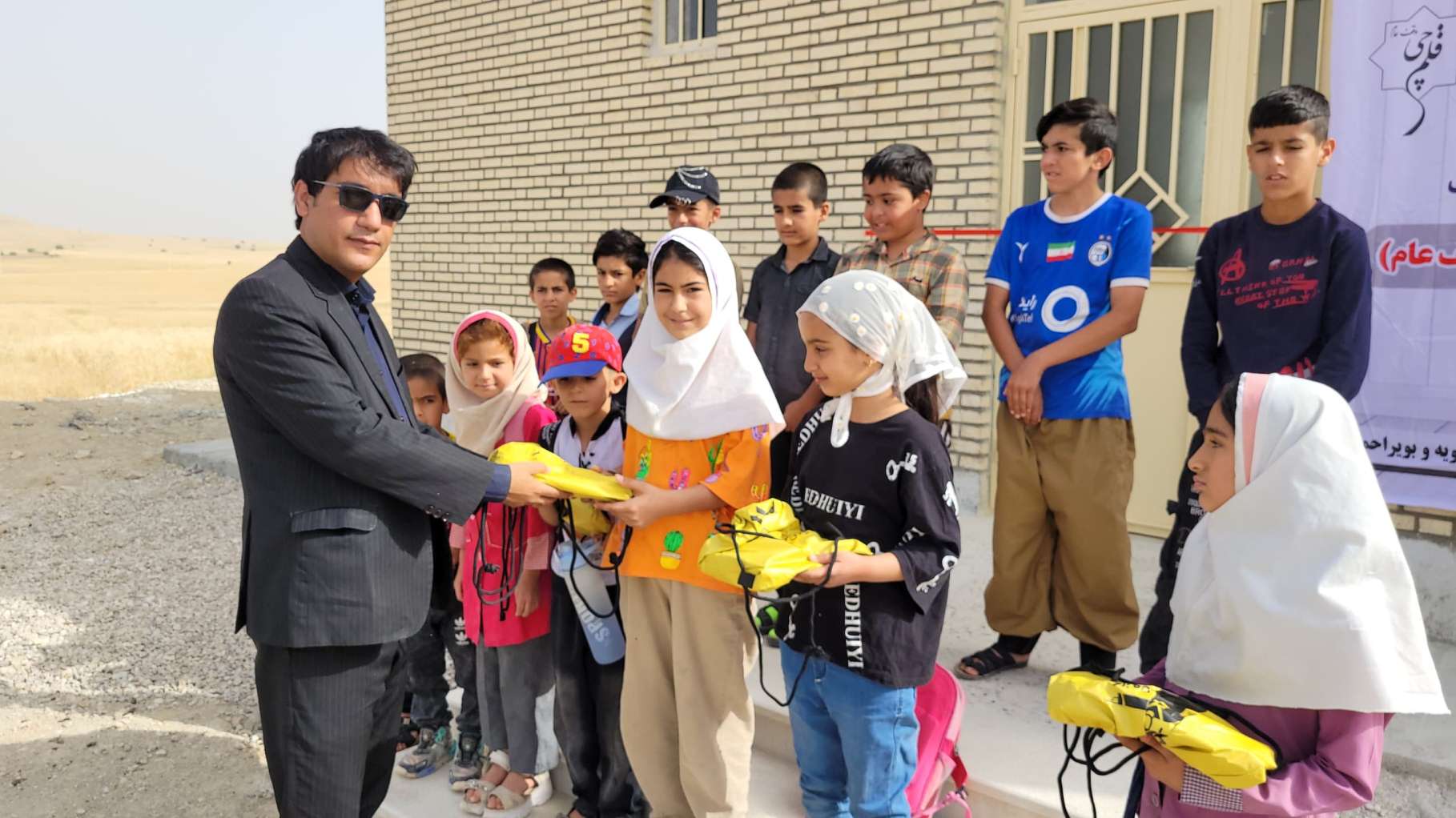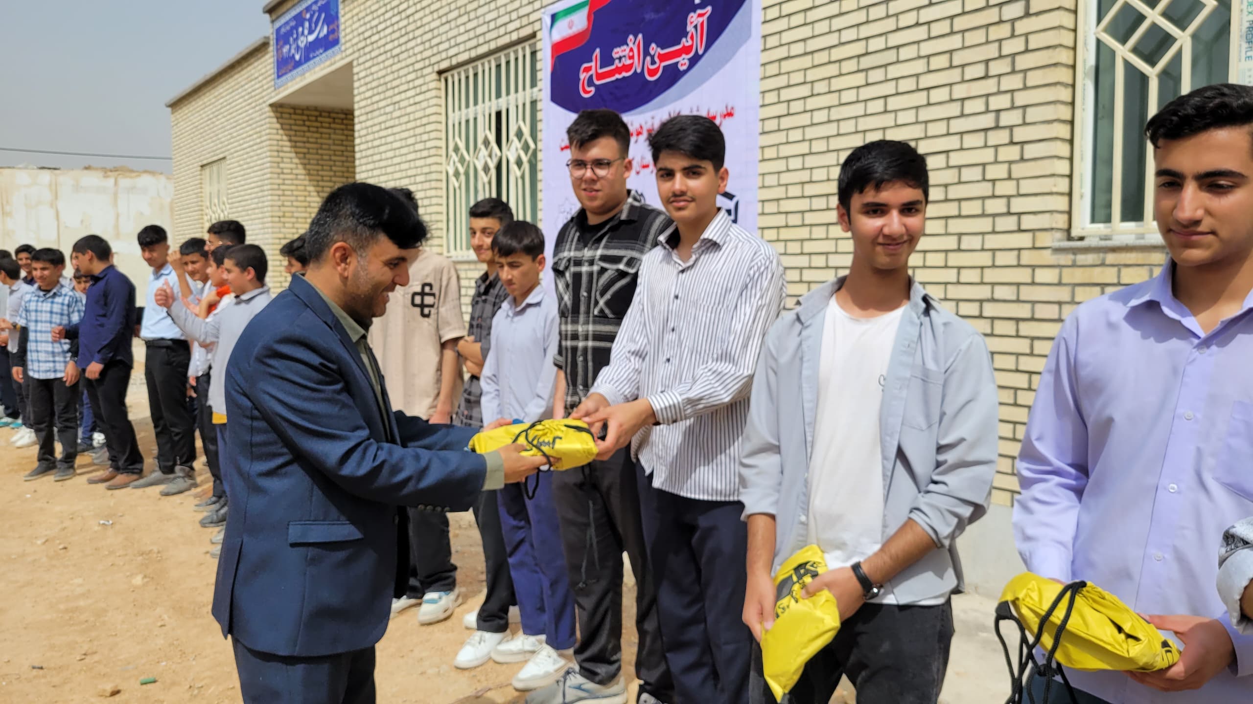 اهدای پکیج لوازمالتحریر توسط صابر فتاحی مسئول پروژههای مدرسهسازی