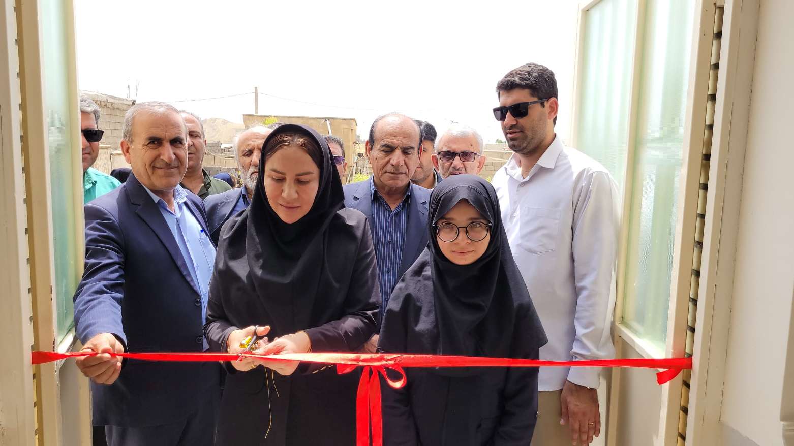 بریدن روبان افتتاح توسط معلم مدرسه