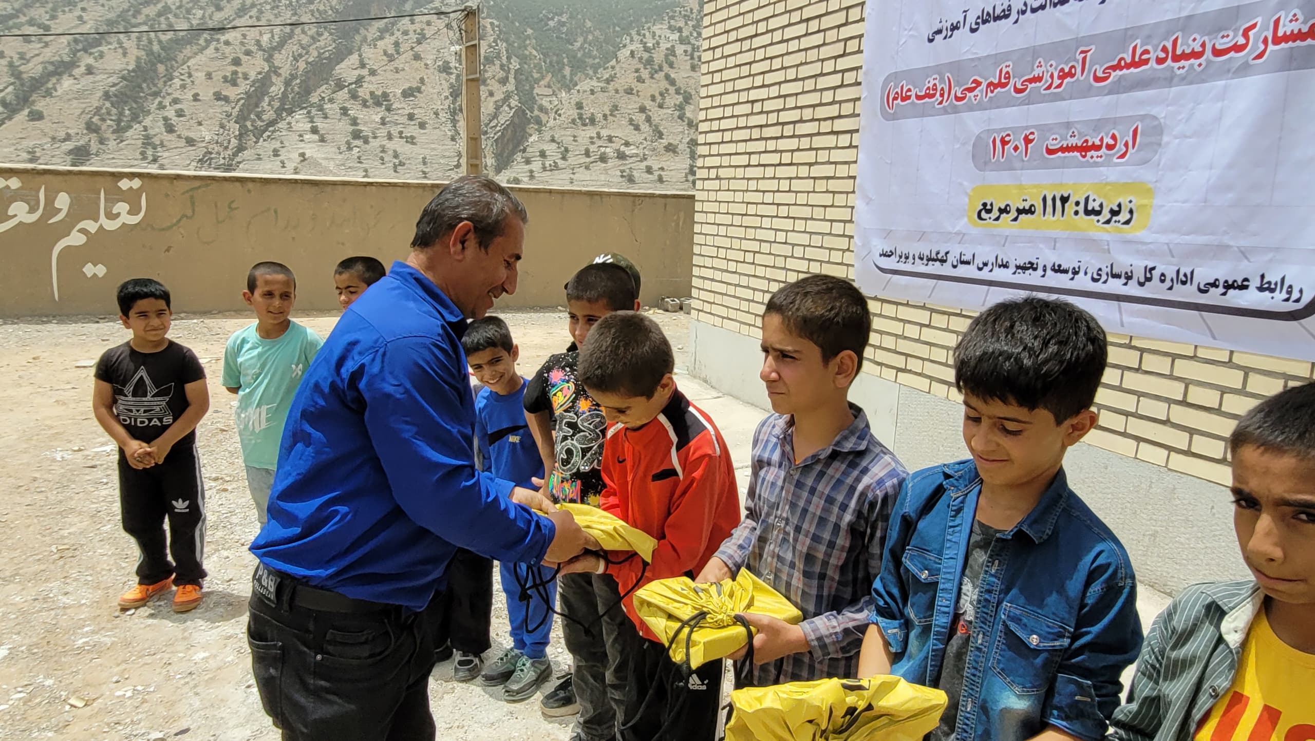 اهدای پکیج لوازمالتحریر توسط سید ریحان ناجیمقدم مسئول نظارت بر مدارس جدید بنیاد قلمچی در استان کهگیلویه و بویراحمد