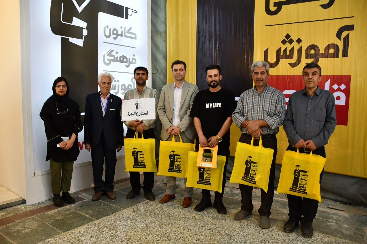 حسین سرمه، رمضانعلی محسنی و مریم صدیقی (همکاران واحد اهدای کتاب به کتابخانهها) همراه با مسئولان و کتابداران کتابخانههای عمومی استان البرز