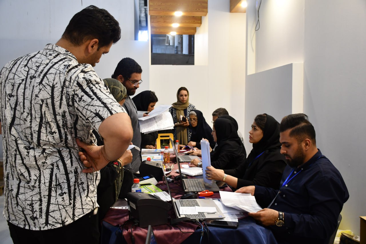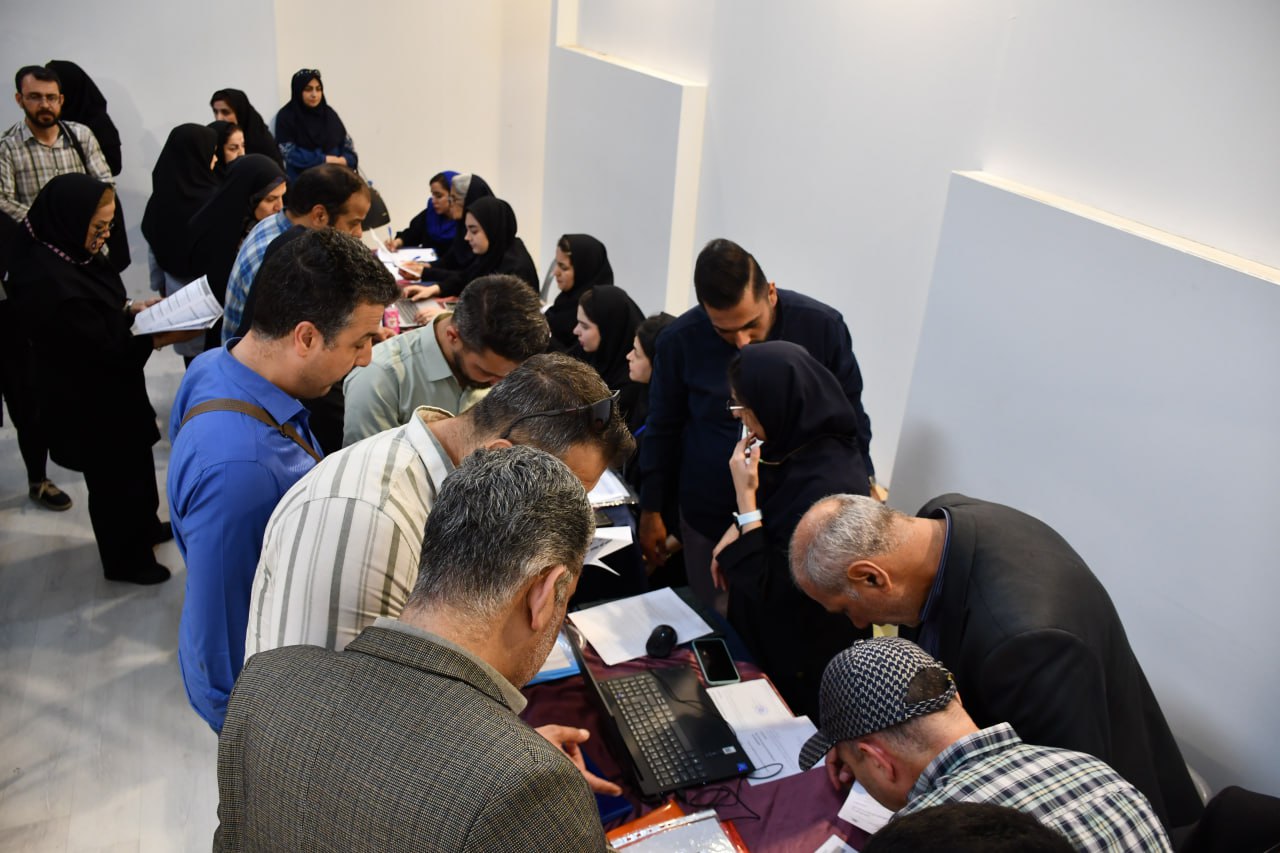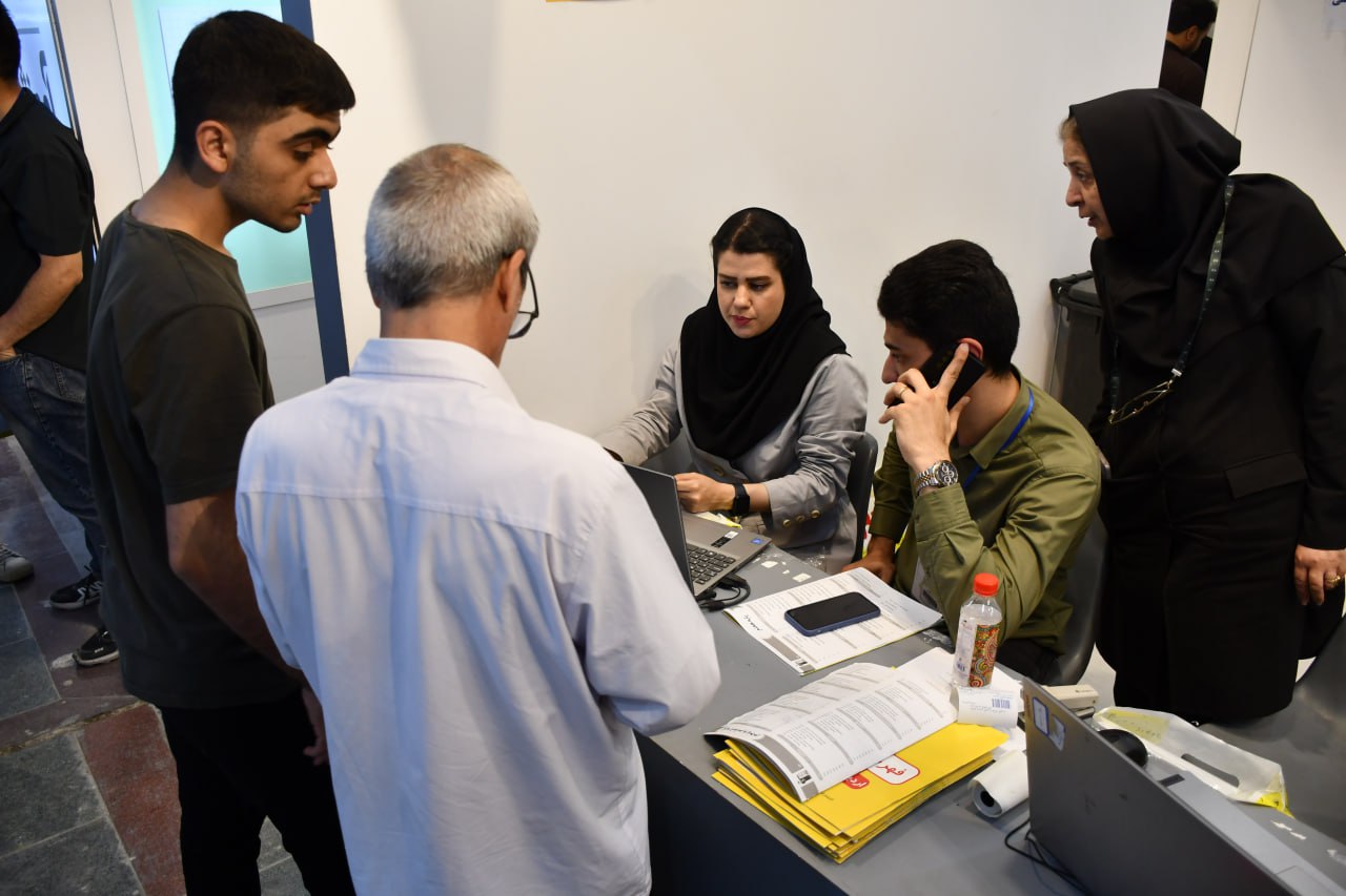 حمید مینایی از مدیران واحد مدارس تهران جنوب در حال راهنمایی مراجعان