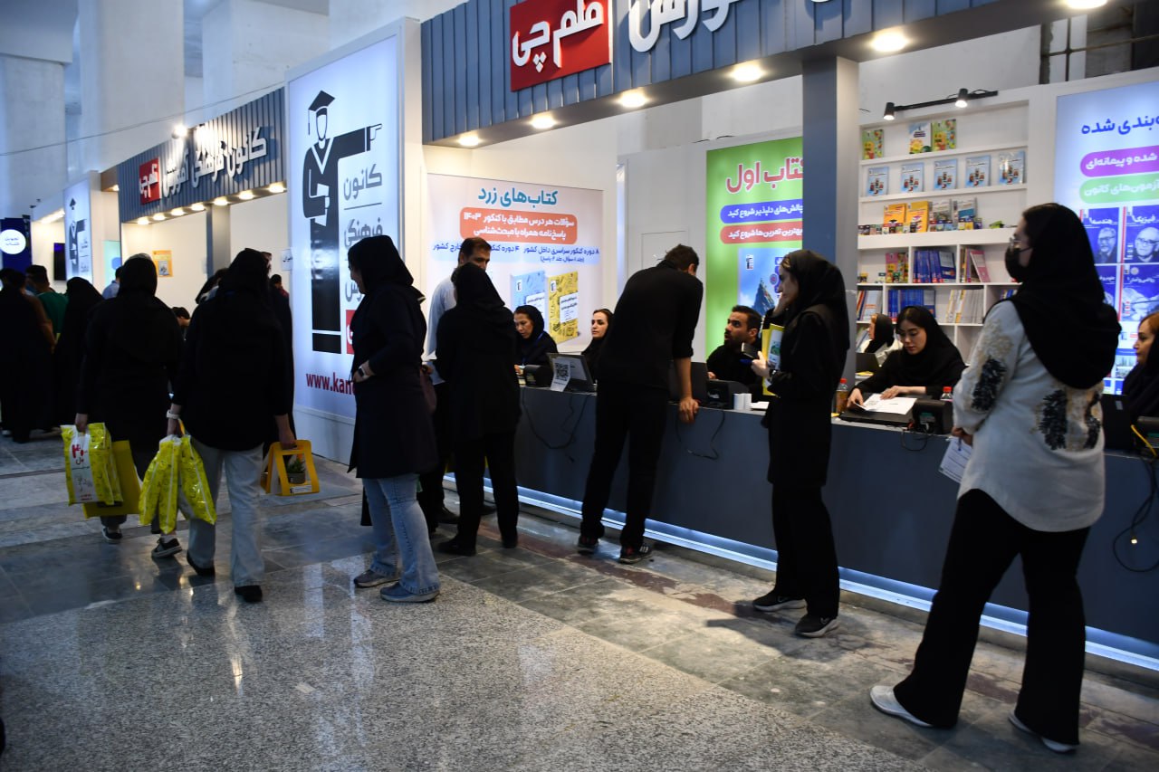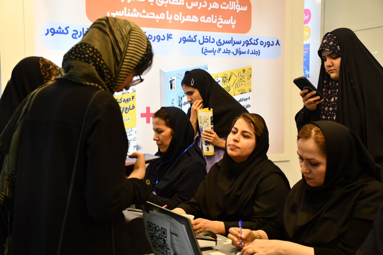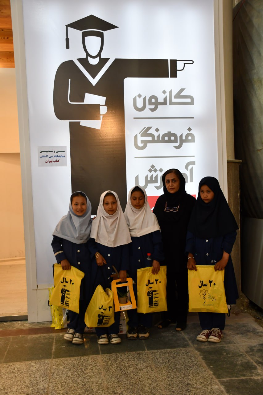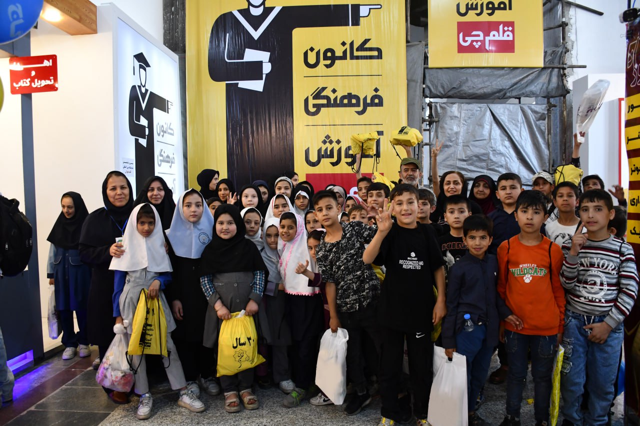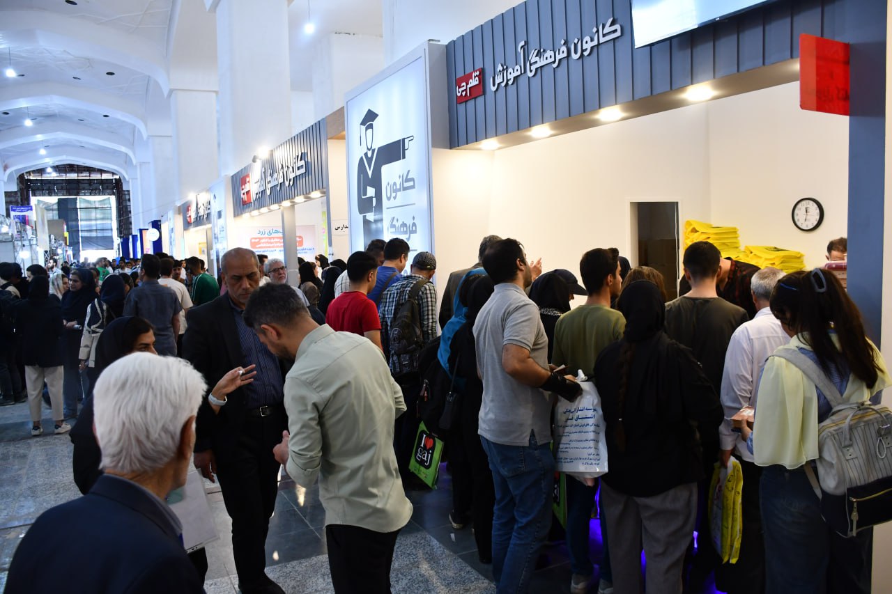 استقبال دانش آموزان و پدران و مادران از غرفه کانون در نمایشگاه کتاب