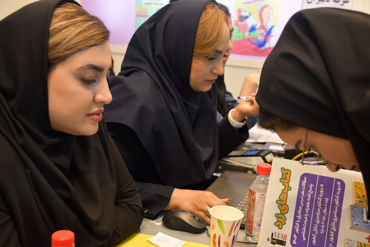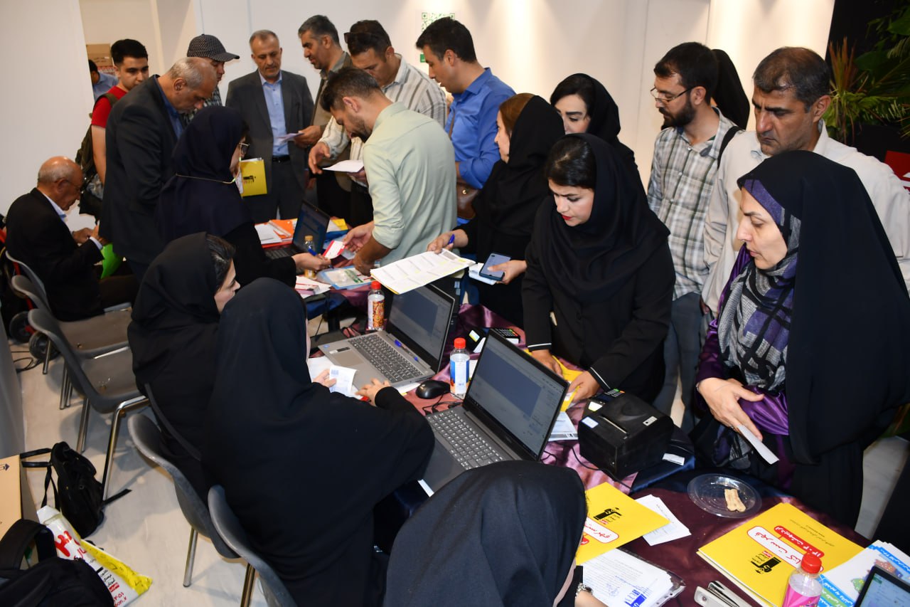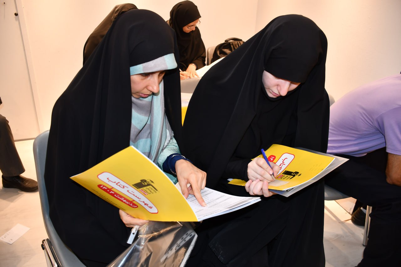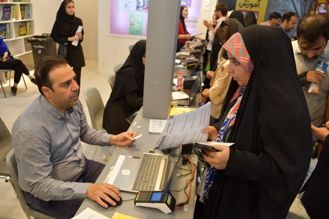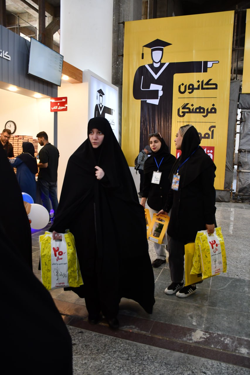 استقبال دانش آموزان و پدران و مادران از غرفه کانون در نمایشگاه کتاب