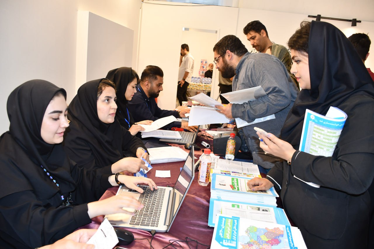 همکاران واحدهای تجهیز کتابخانه ها و مدارس در حال پاسخگویی به مراجعان