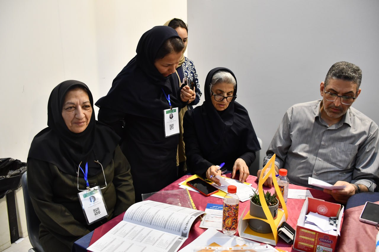 از مسئولان واحد مدارس کانون تهران در حال راهنمایی نمایندگان مدارس