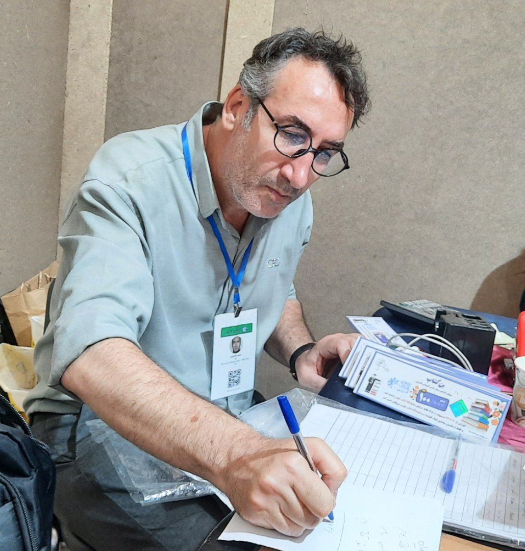 حمید آقالویی در بخش مدیریت اهدای بن کتاب به همکاران کانون، در حال تنظیم مستندات