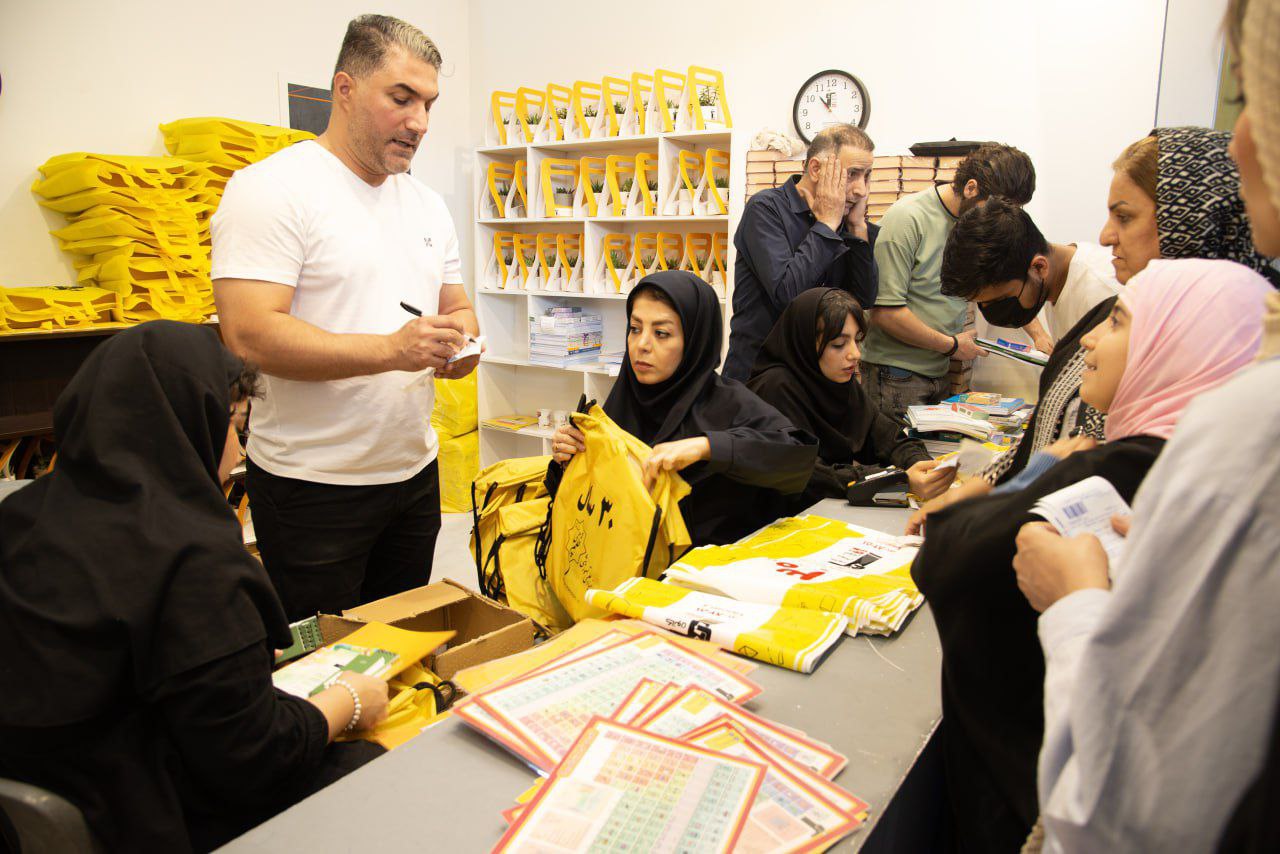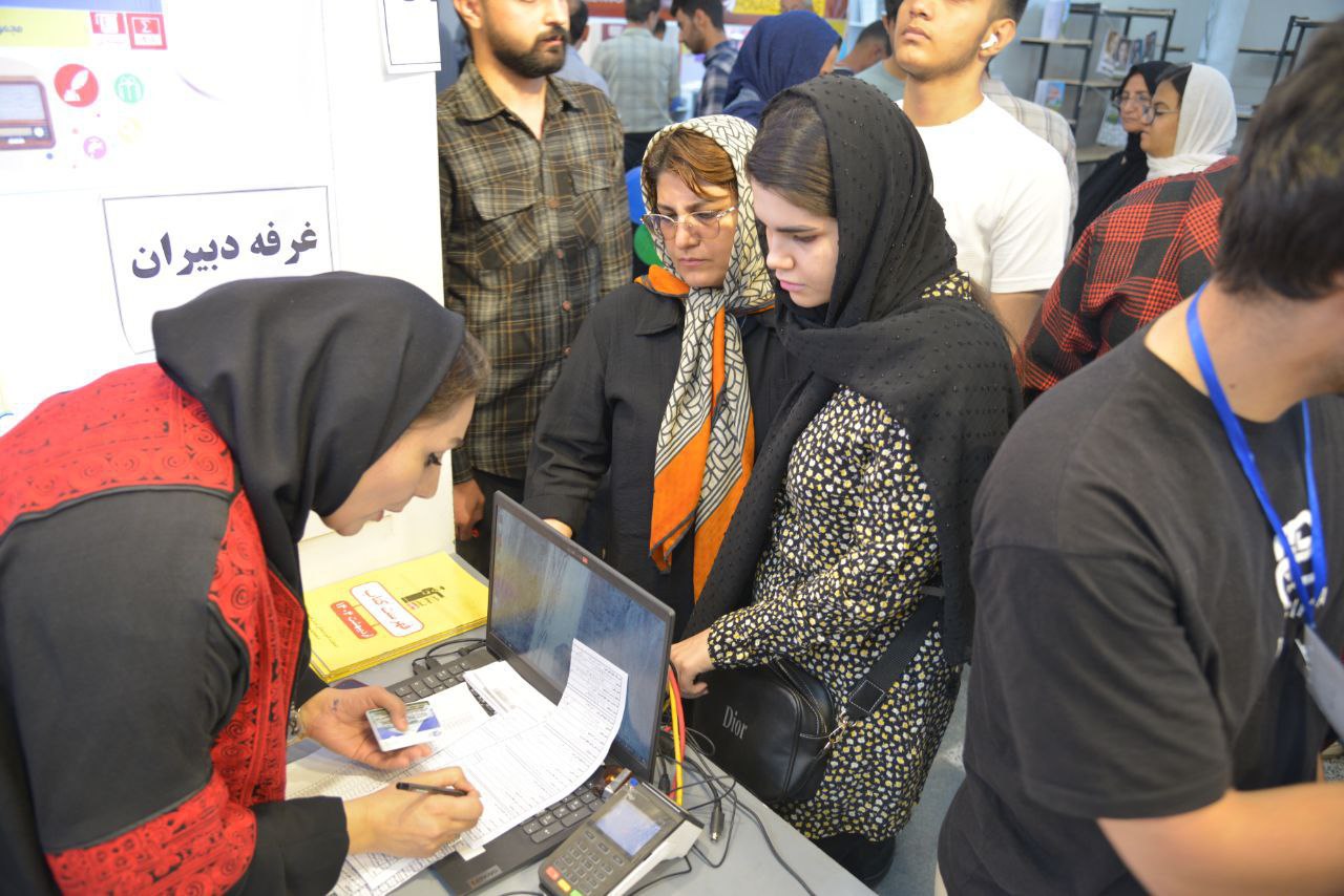 حامد عالم و همکاران واحد تحویل کتاب و هدایای کانون در حال پاسخگویی به مراجعان