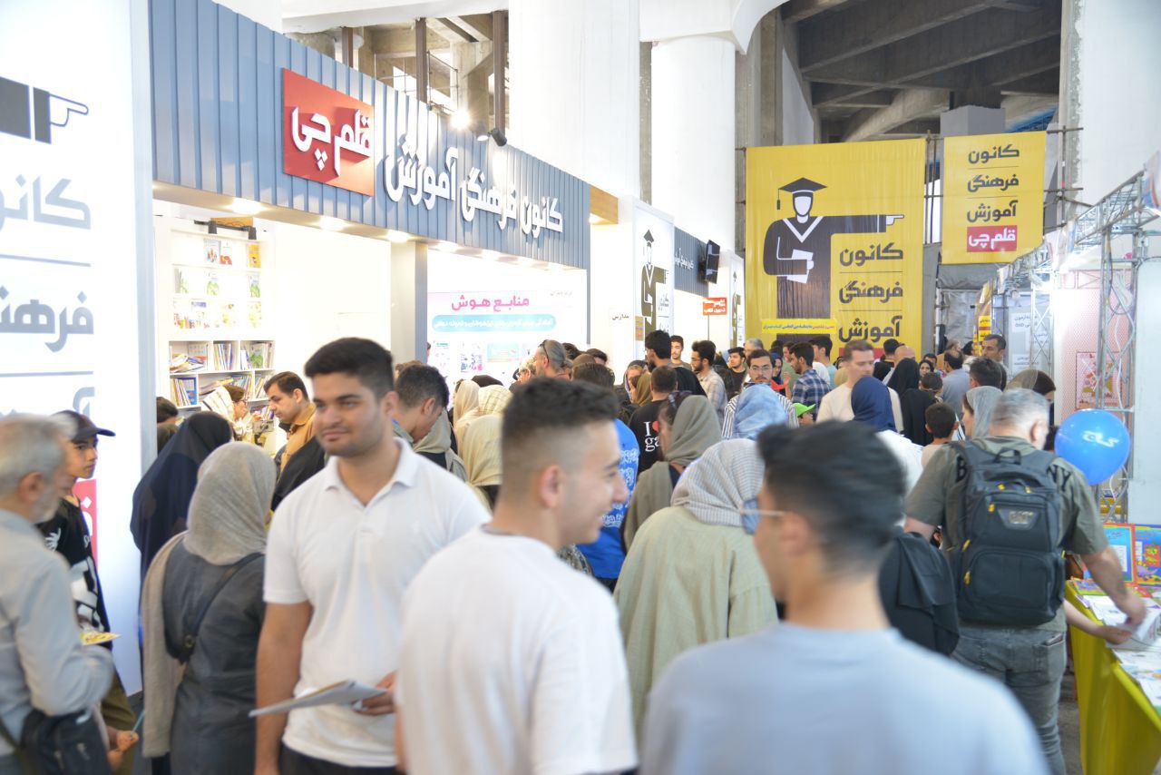 نمایی از غرفه کانون در نمایشگاه همراه با جمعیت زیاد مراجعه کننده