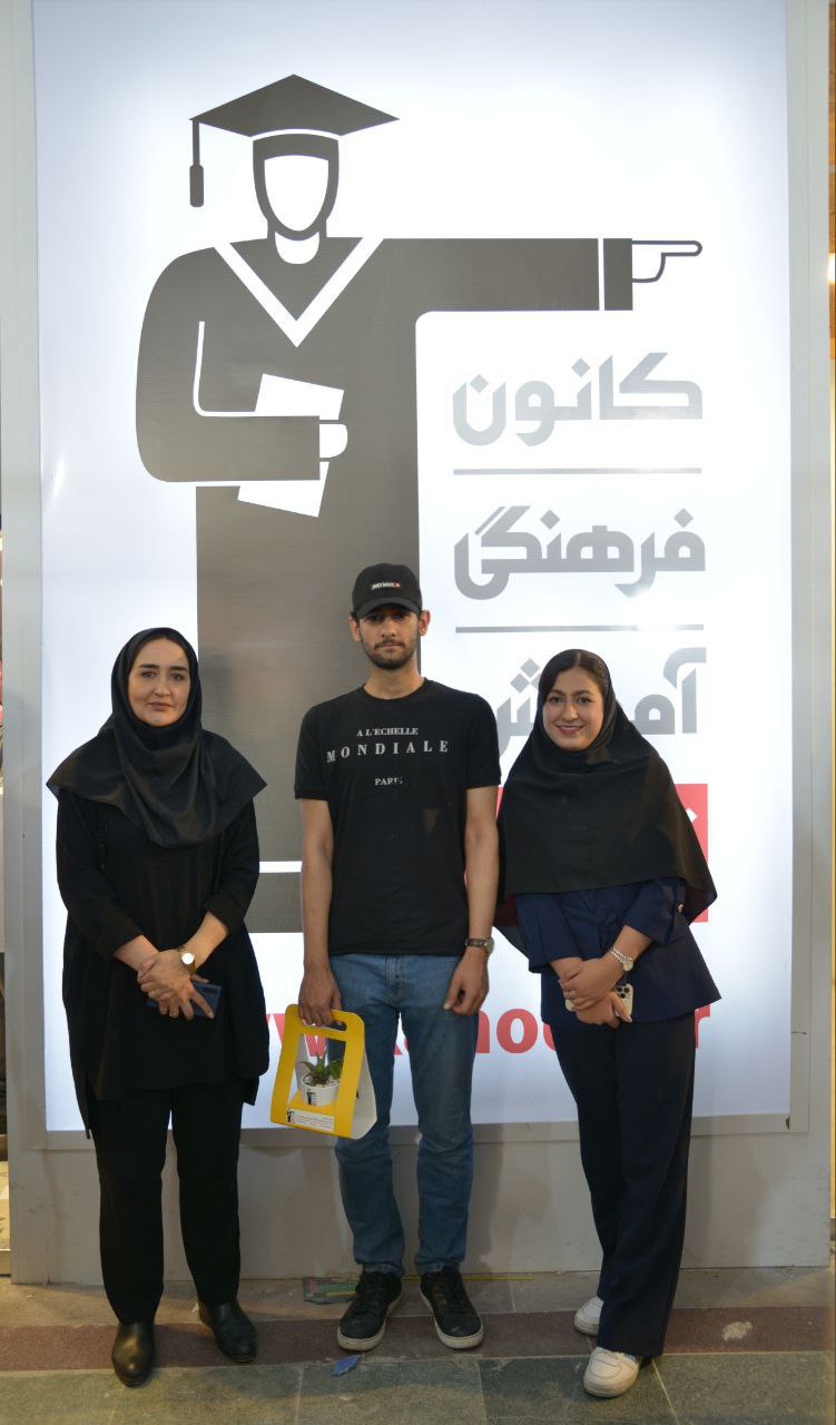 زهرا زارع همکار بخش منابع انسانی، علی خلیلی رتبه ۷ تجربی کشور ۱۴۰۳ در کنار مریم امیرحسینی مدیر منابع انسانی کانون