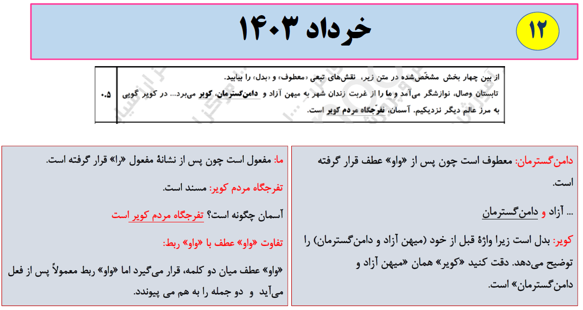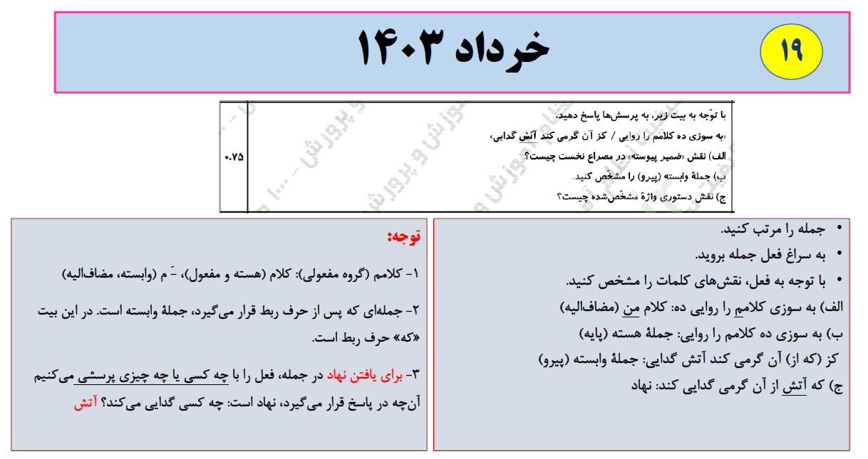 نکات مبحث دستور - فارسی 3- امتحان نهایی خرداد 1403