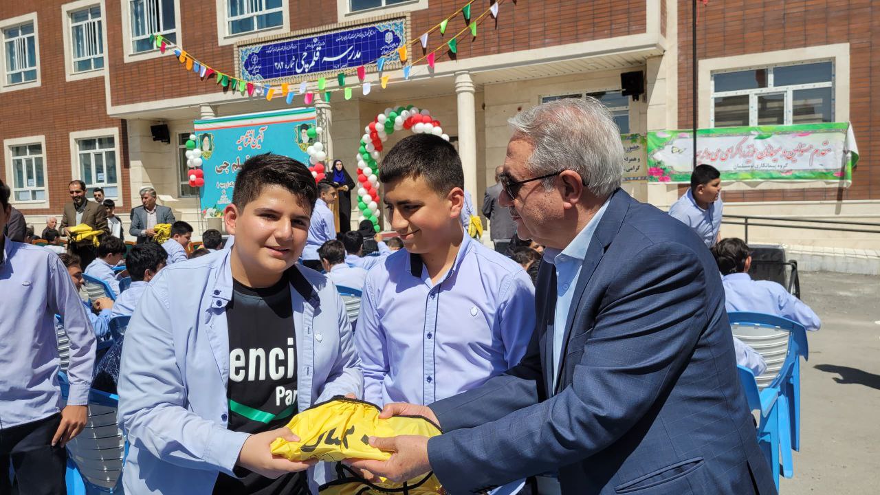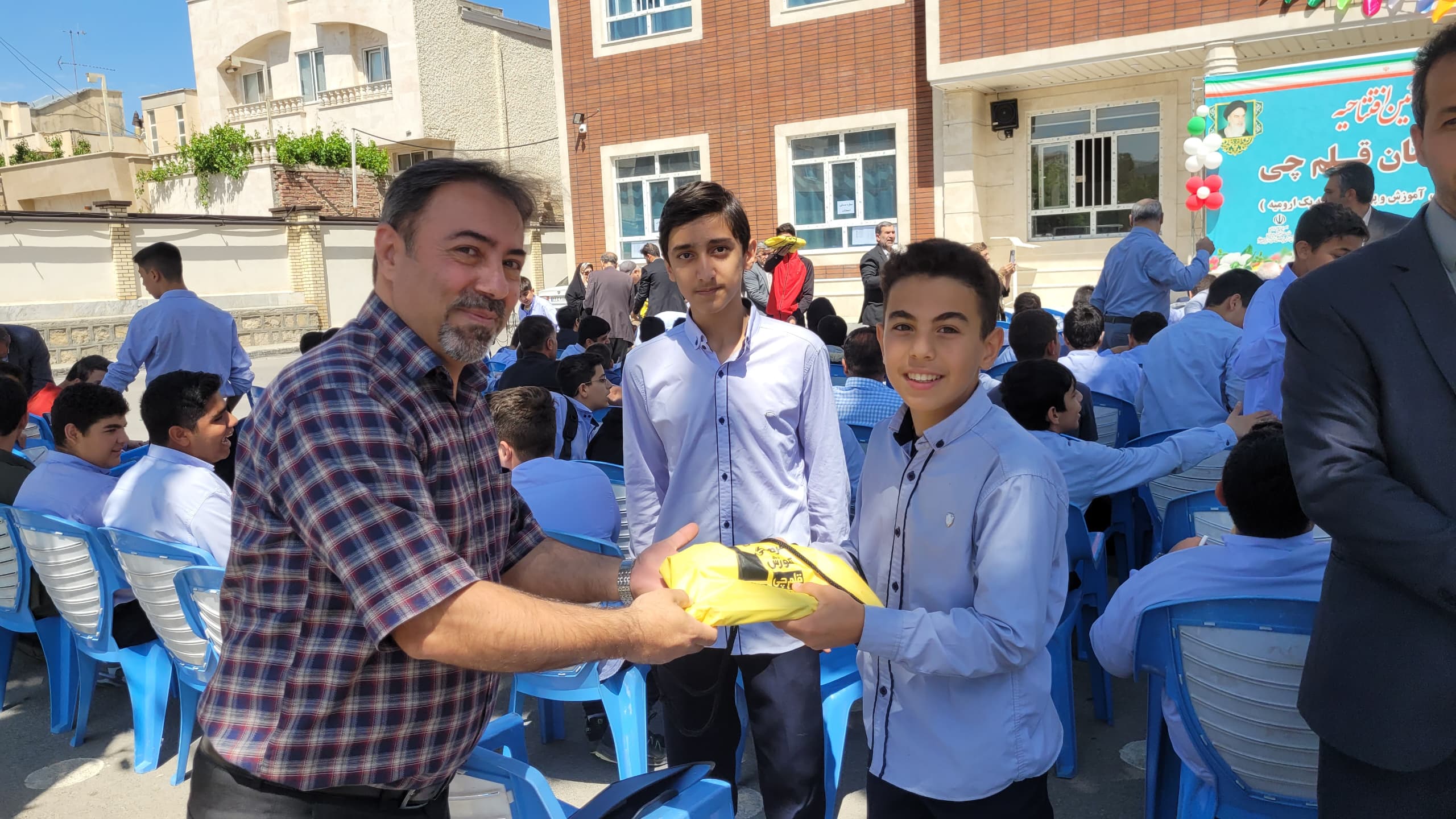 اهدای پکیج لوازم التحریر توسط رضا خضرلو مسئول نمایندگی خوی