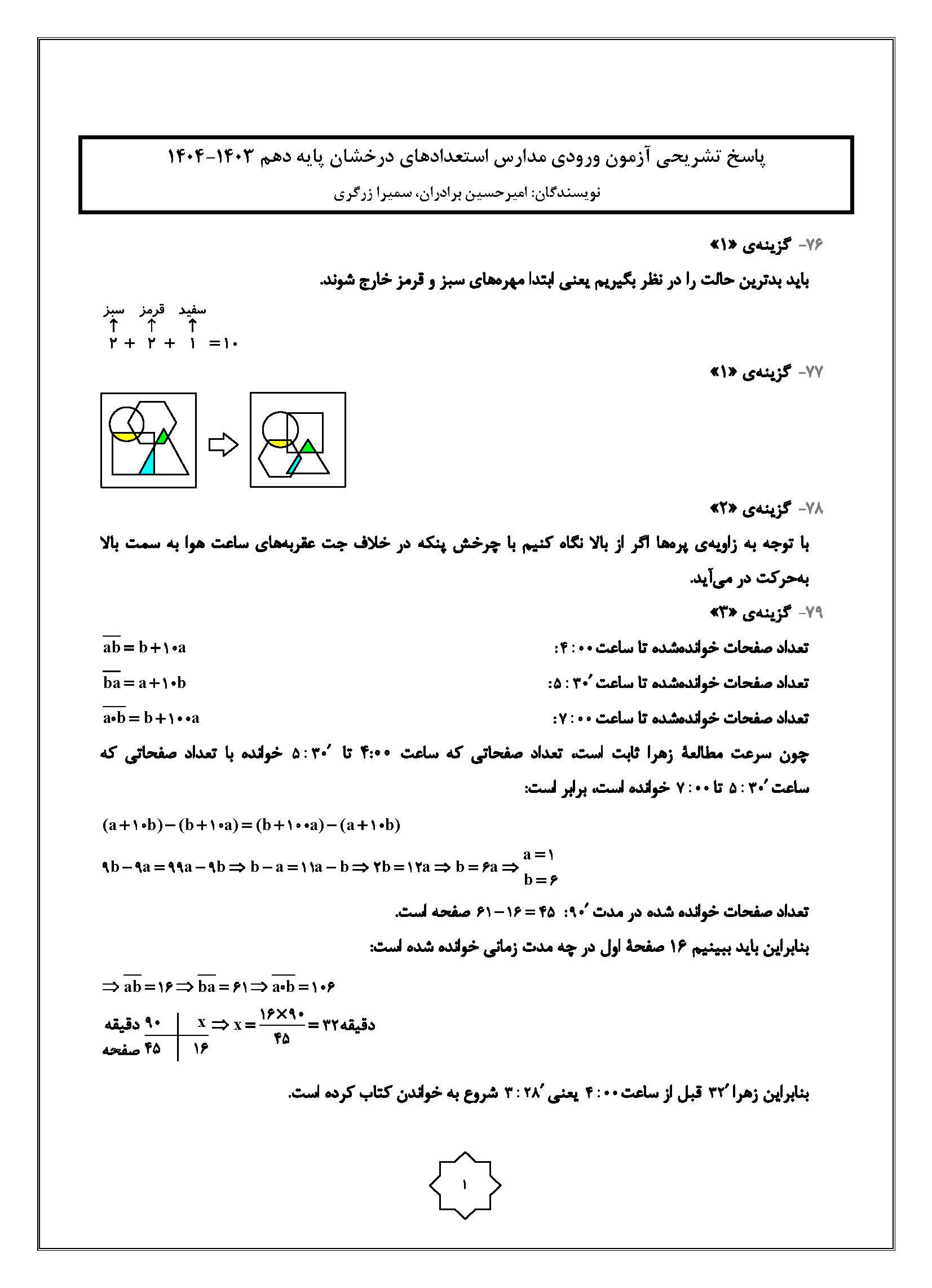 در ادامه مطلب پاسخ تشریحی آزمون را مشاهده می کنید در فایل پیوست در انتهای مطلب هم می توانید سوالات را دریافت نمایید.