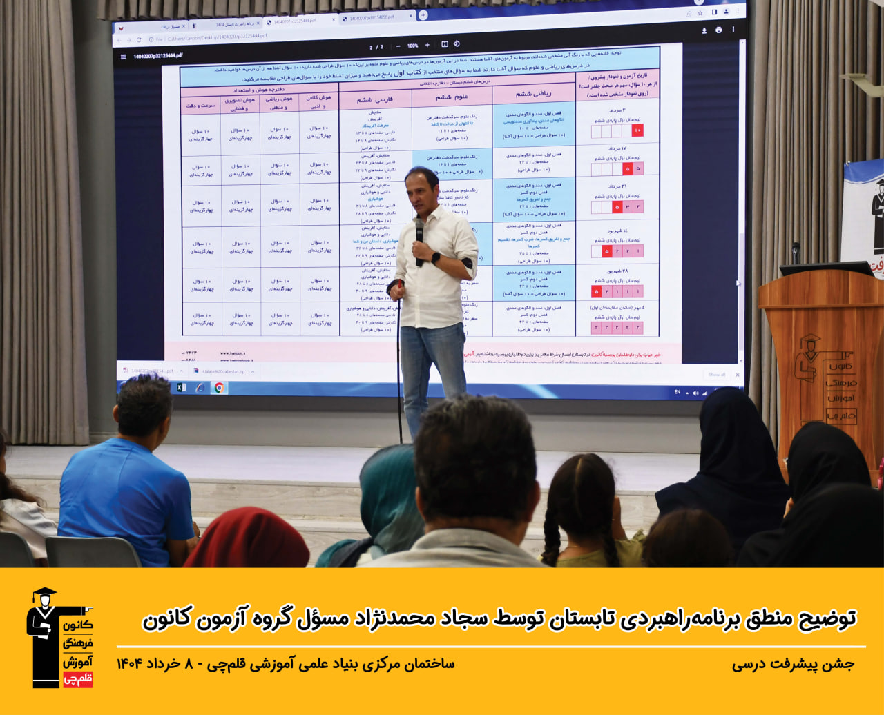 در بخش دیگری از مراسم ، آقای محمدنژاد هماهنگ کننده گروه آزمون کانون درباره برنامه راهبردی آزمون های تابستان توضیح دادند و خانم راسخ و آقای اصفهانی که از همکاران علمی گروه آزمون هستند و علاوه بر آن مدرس کلاس های هوش کانون هم هستند، مسابقه حل سوالات هوش را برگزار کردند