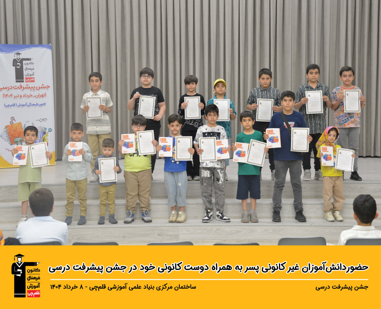 در ابتدا به تمام دانش آموزان حاضر لوح تقدیر اهدا شد و از تمام حاضرین جلسه بابت پیشرفت درسی در مدرسه یا آزمون های کانون تجلیل شد.