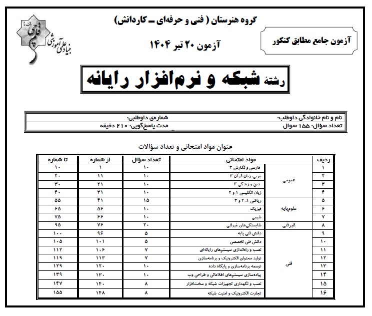 توجه: تعداد سوالات و نحوه چیدمان درسها در دفترچه، طبق کنکور سراسری 1403 میباشد.