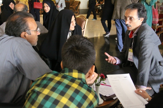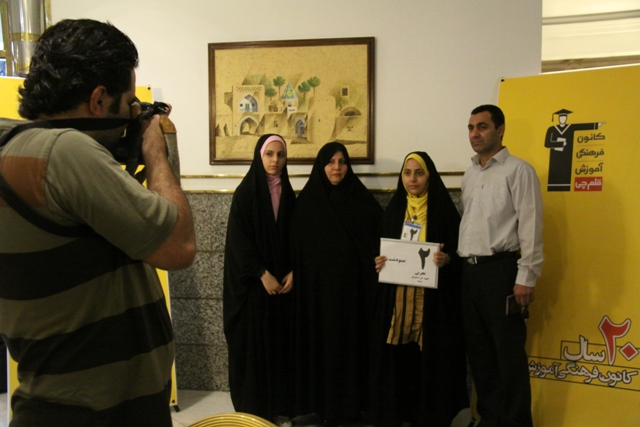 آرين احمدي مشاور کانون در حال گفت و گو با خانواده رتبه برتر