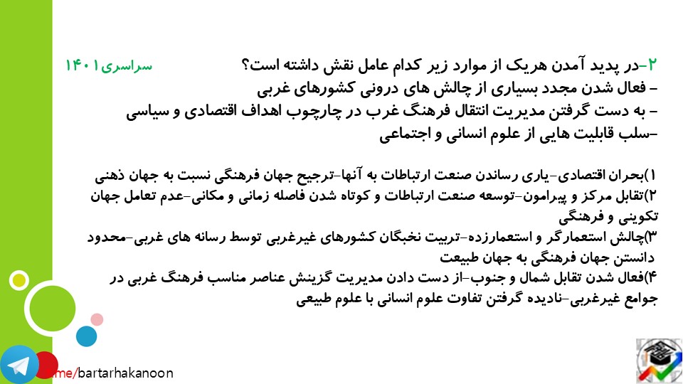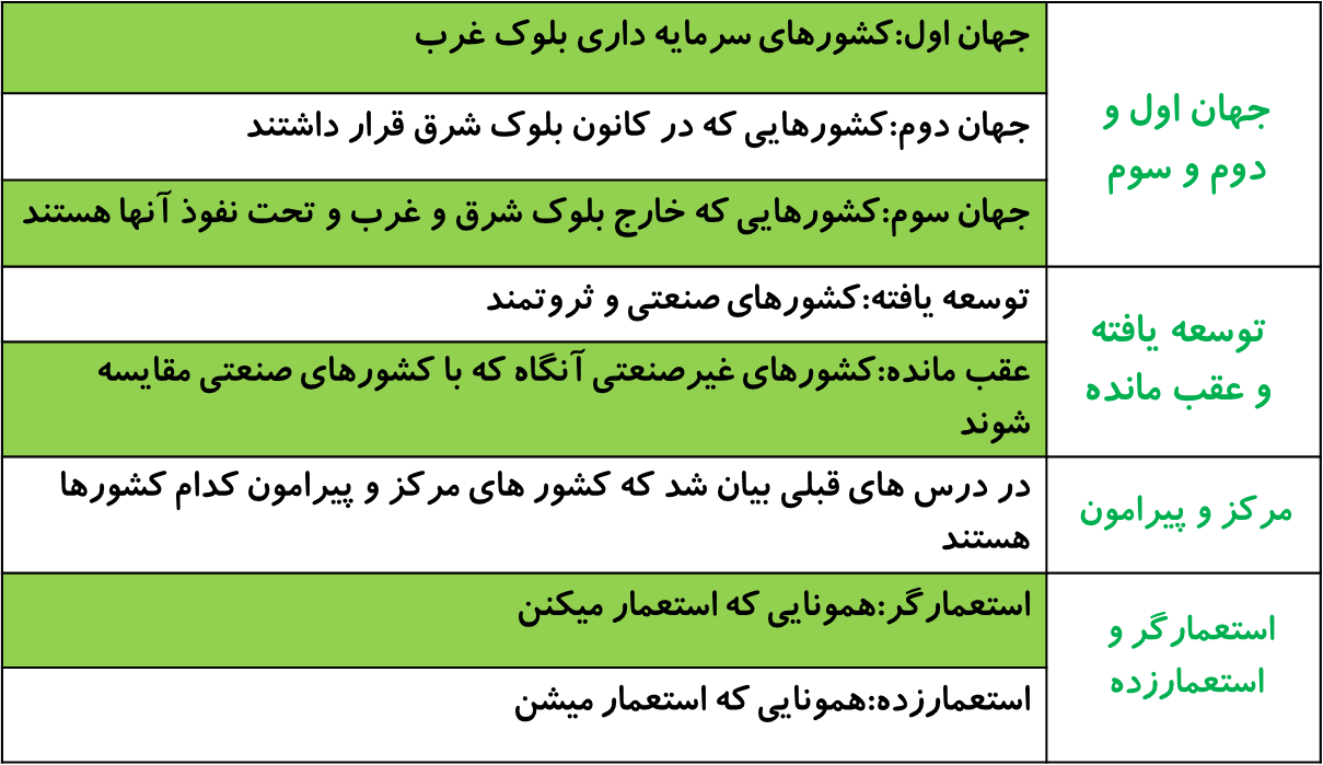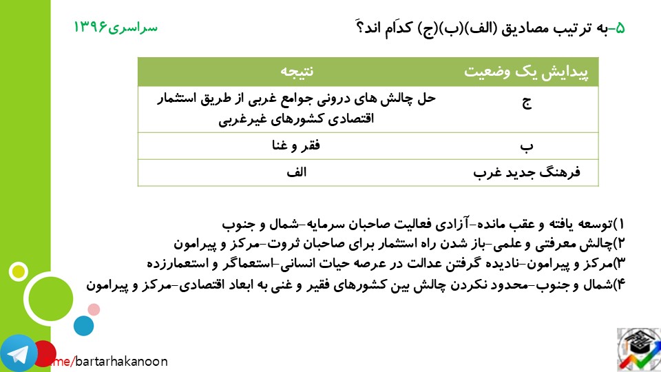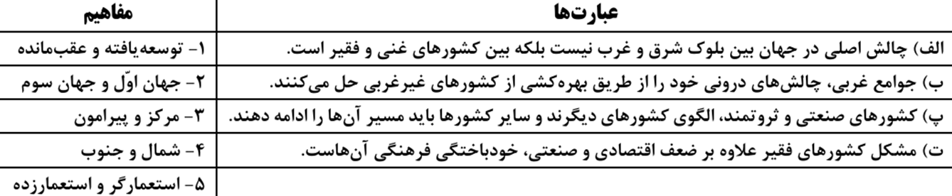 پ)1-توسعه یافته و عقب مانده ت)5-استعمارگر و استعمارزده