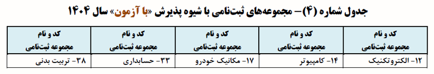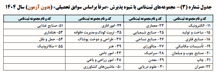 رشتههای ثبت نامی پذیرش بر اساس سوابق تحصیلی: