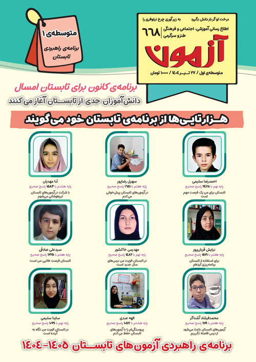 شما دانشآموزان میتوانید مجلات آزمون 20 تیر را از طریق فایل ضمیمه این مطلب دانلود کرده و مطالعه کنید.نسخهی کاغذی مجلهی آزمون 20 تیر برای نمایندگیها ارسال شده است و شما در صورت تمایل میتوانید به نمایندگی مراجعه و نسخهی کاغذی را دریافت کنید.