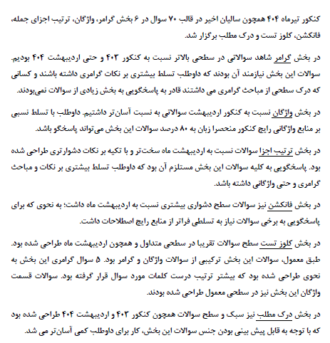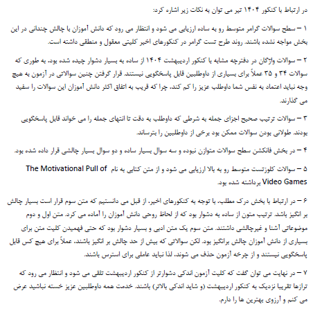 رتبه های برتر و دبیران که در زمینه علمی با کانون همکاری دارند به تحلیل کنکور تیر ۱۴۰۴ پرداختهاند.