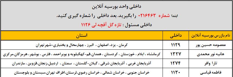 در صورتی که کد سفارش خود را دریافت نکردید یا مشکلی برای انتخاب عناوین داشتید، طبق جدول زیر با بازرس بورسیه استان خود تماس بگیرید.
