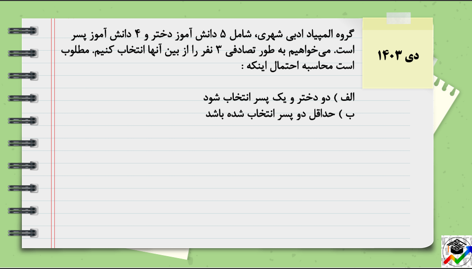 1- درسنامه کامل به همراه مثال و نکات احتمال