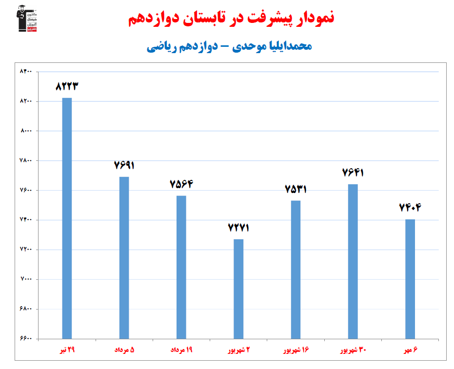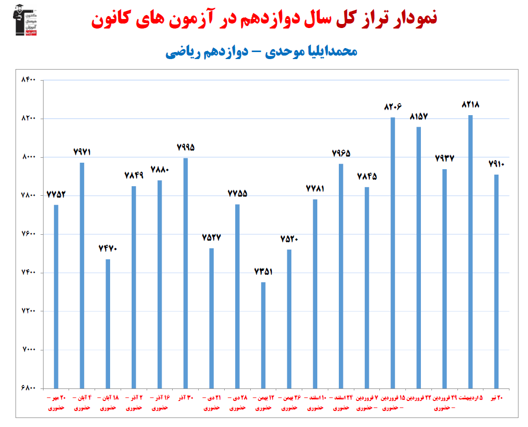 در ادامه میتوانید عملکرد درسی محمدايليا موحدي را در کانون مشاهده کنید.نمودار پیشرفت میانگین تراز در پایههای مختلف، نمودار تراز کل، عملکرد آزمونهای سال دوازدهم و شروع از تابستان و تراز آزمون های تابستان، کارنامههای مبحثی در نمودارها و تصاویر زیر قابل مشاهده است.