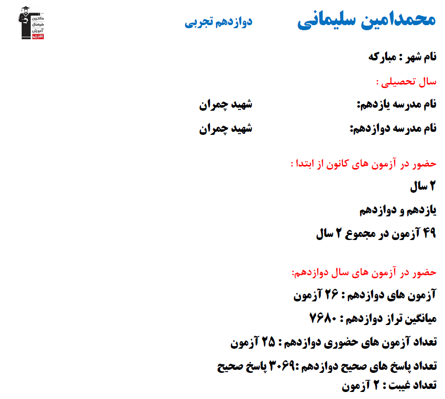 با برترهای دوازدهم تجربی ۱۴۰۴ آشنا شوید: