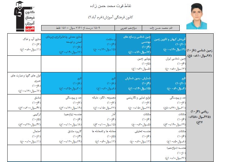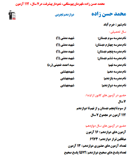 در ادامه میتوانید عملکرد درسی محمد حسن زاده را در کانون مشاهده کنید.