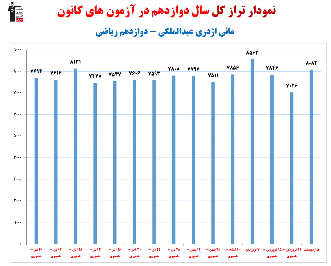 نمودار پیشرفت میانگین تراز در پایههای مختلف، نمودار تراز کل، عملکرد آزمونهای سال دوازدهم و شروع از تابستان و تراز آزمون های تابستان، کارنامههای مبحثی در نمودارها و تصاویر زیر قابل مشاهده است.
