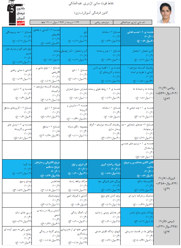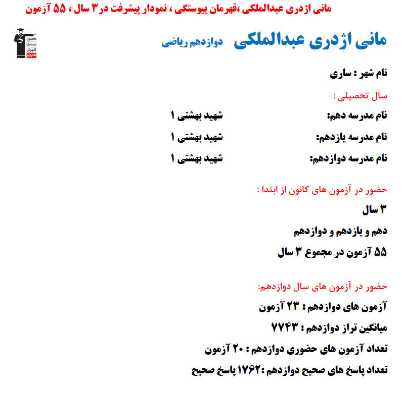 در ادامه میتوانید عملکرد درسی مانی اژدری عبدالملکی را در کانون مشاهده کنید.