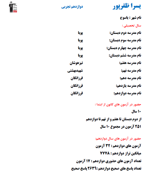 با برترهای دوازدهم تجربی ۱۴۰۴ آشنا شوید: