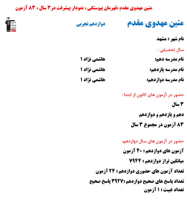 در ادامه میتوانید عملکرد درسی متین مهدوی مقدم را در کانون مشاهده کنید.