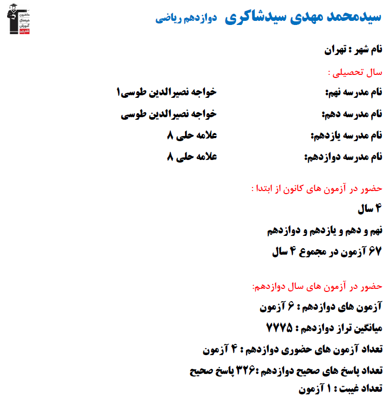 با برترهای دوازدهم ریاضی ۱۴۰۴ آشنا شوید: