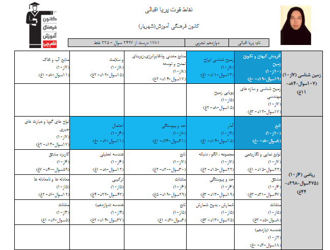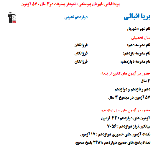 در ادامه میتوانید عملکرد درسی پریا اقبالی را در کانون مشاهده کنید.
