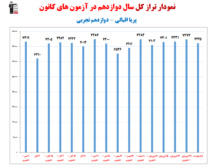 نمودار پیشرفت میانگین تراز در پایههای مختلف، نمودار تراز کل، عملکرد آزمونهای سال دوازدهم و شروع از تابستان و تراز آزمون های تابستان، کارنامههای مبحثی در نمودارها و تصاویر زیر قابل مشاهده است.