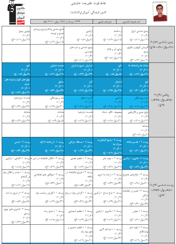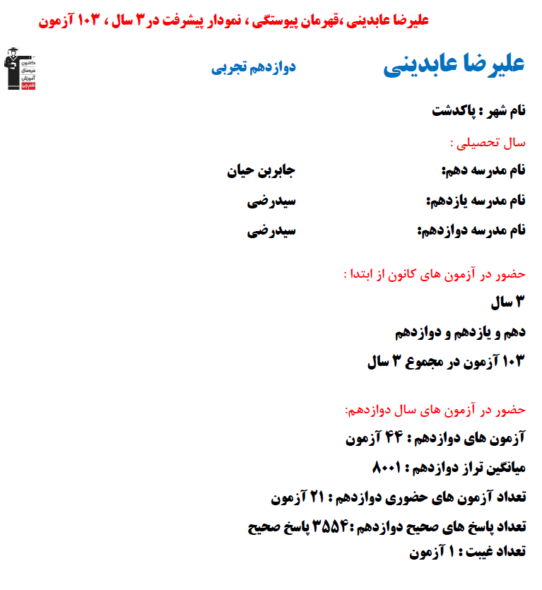 در ادامه میتوانید عملکرد درسی علیرضا عابدینی را در کانون مشاهده کنید.