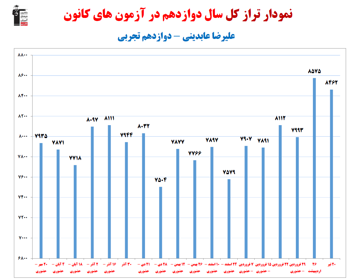 نمودار پیشرفت میانگین تراز در پایههای مختلف، نمودار تراز کل، عملکرد آزمونهای سال دوازدهم و شروع از تابستان و تراز آزمون های تابستان، کارنامههای مبحثی در نمودارها و تصاویر زیر قابل مشاهده است.