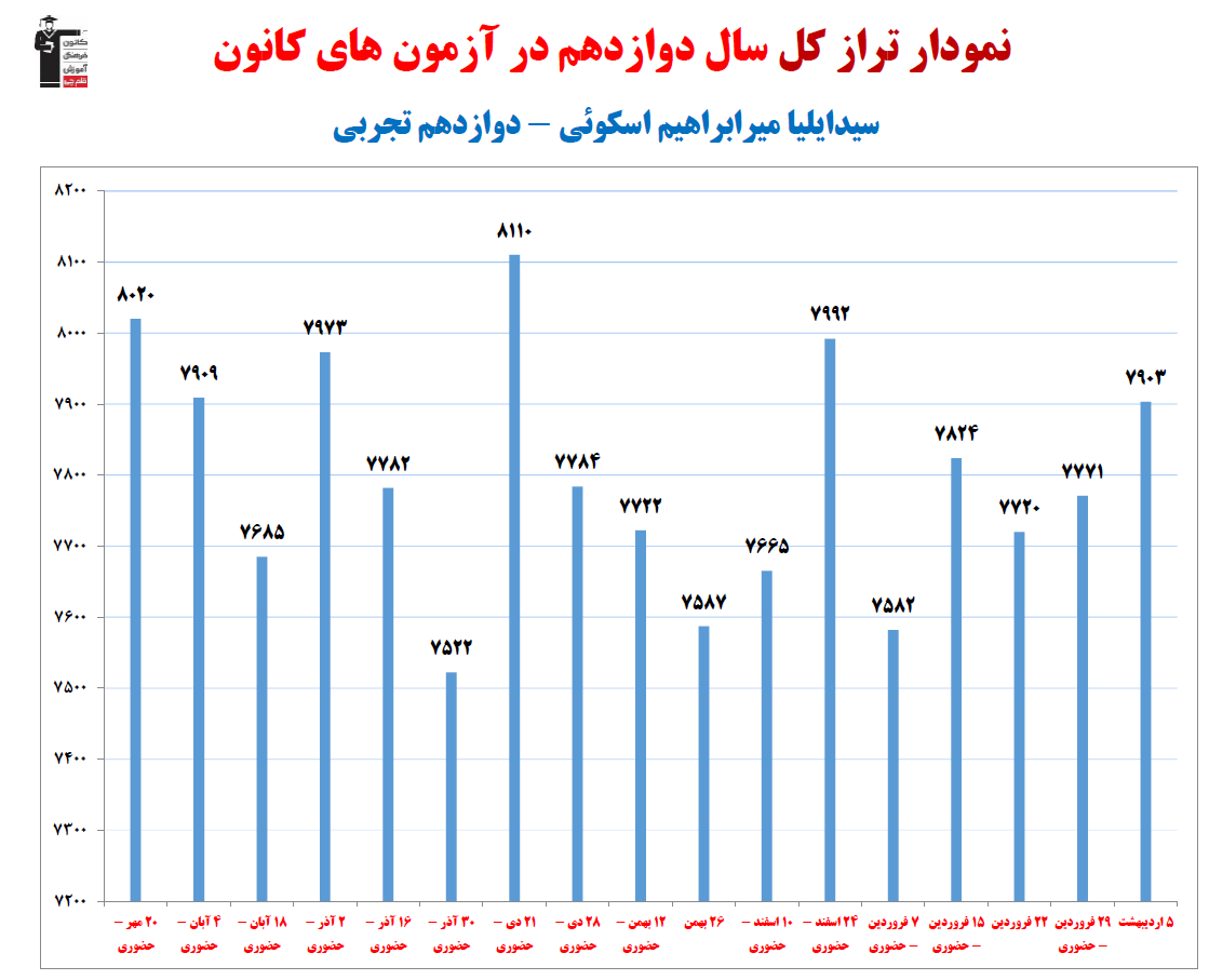 نمودار پیشرفت میانگین تراز در پایههای مختلف، نمودار تراز کل، عملکرد آزمونهای سال دوازدهم و شروع از تابستان و تراز آزمون های تابستان، کارنامههای مبحثی در نمودارها و تصاویر زیر قابل مشاهده است.